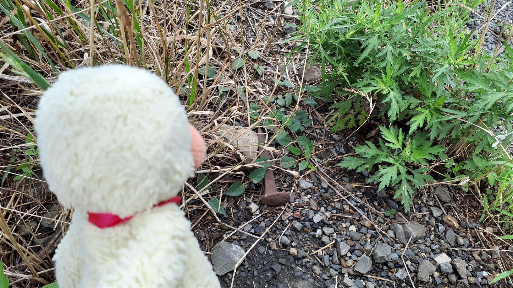 あら、踏切の横に犬釘が落ちてる・・・