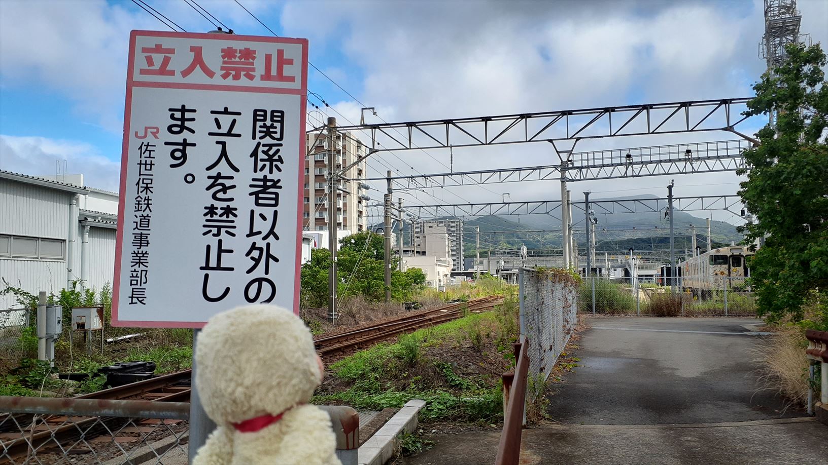 看板の手前から見物(皆さんも守りましょう)