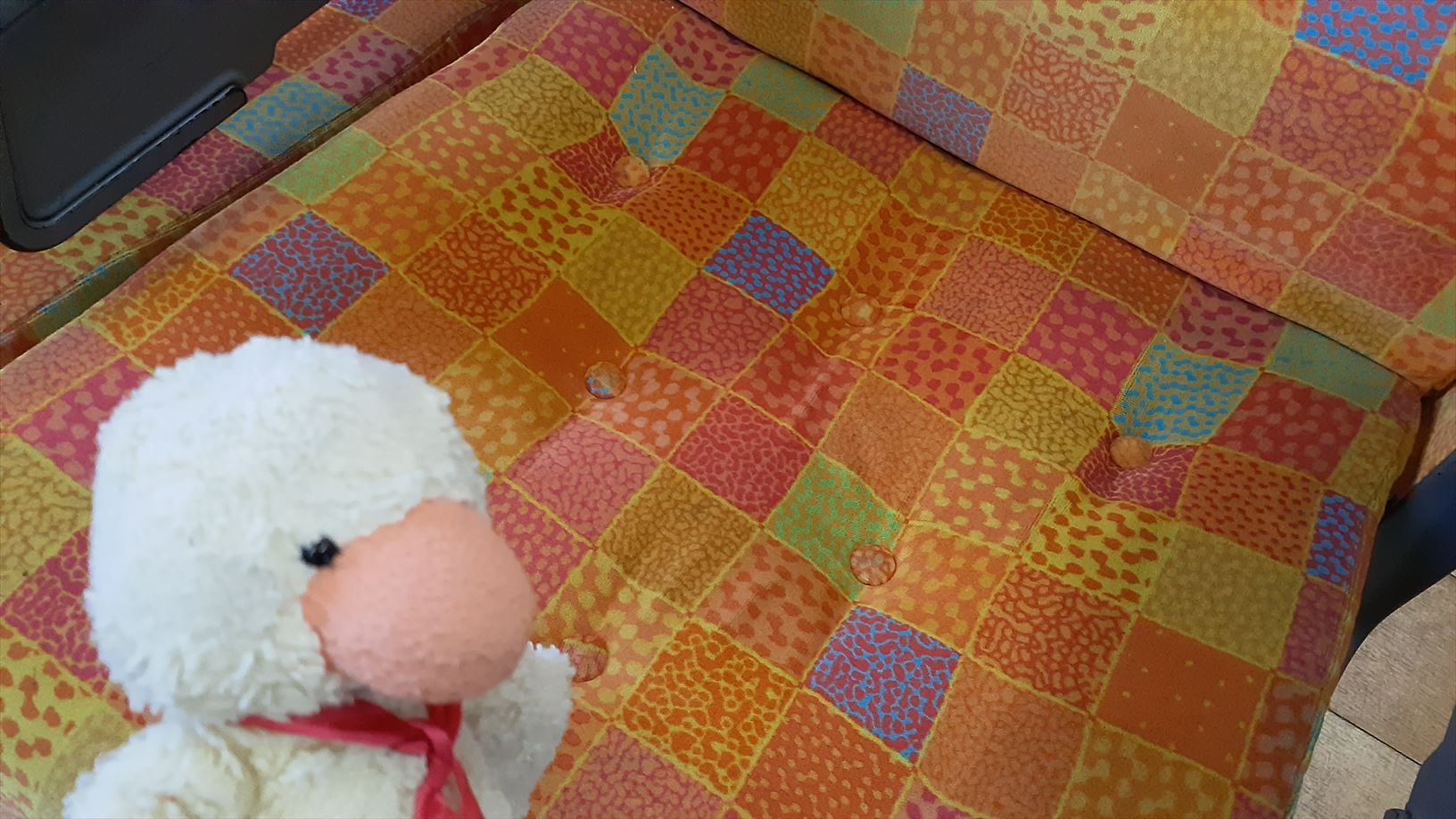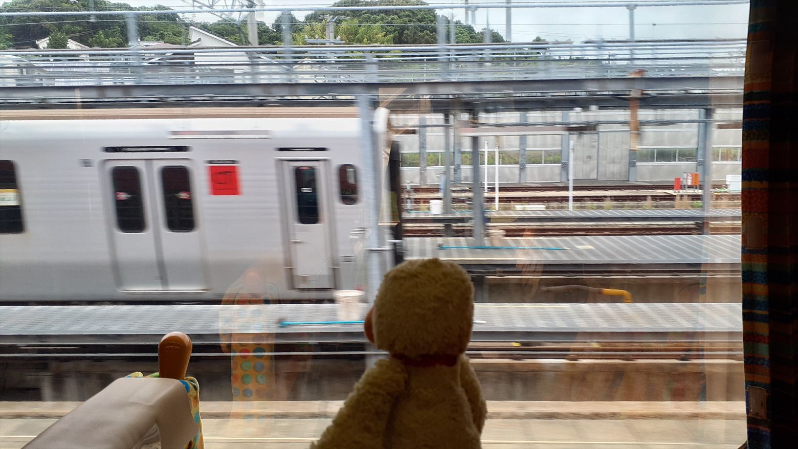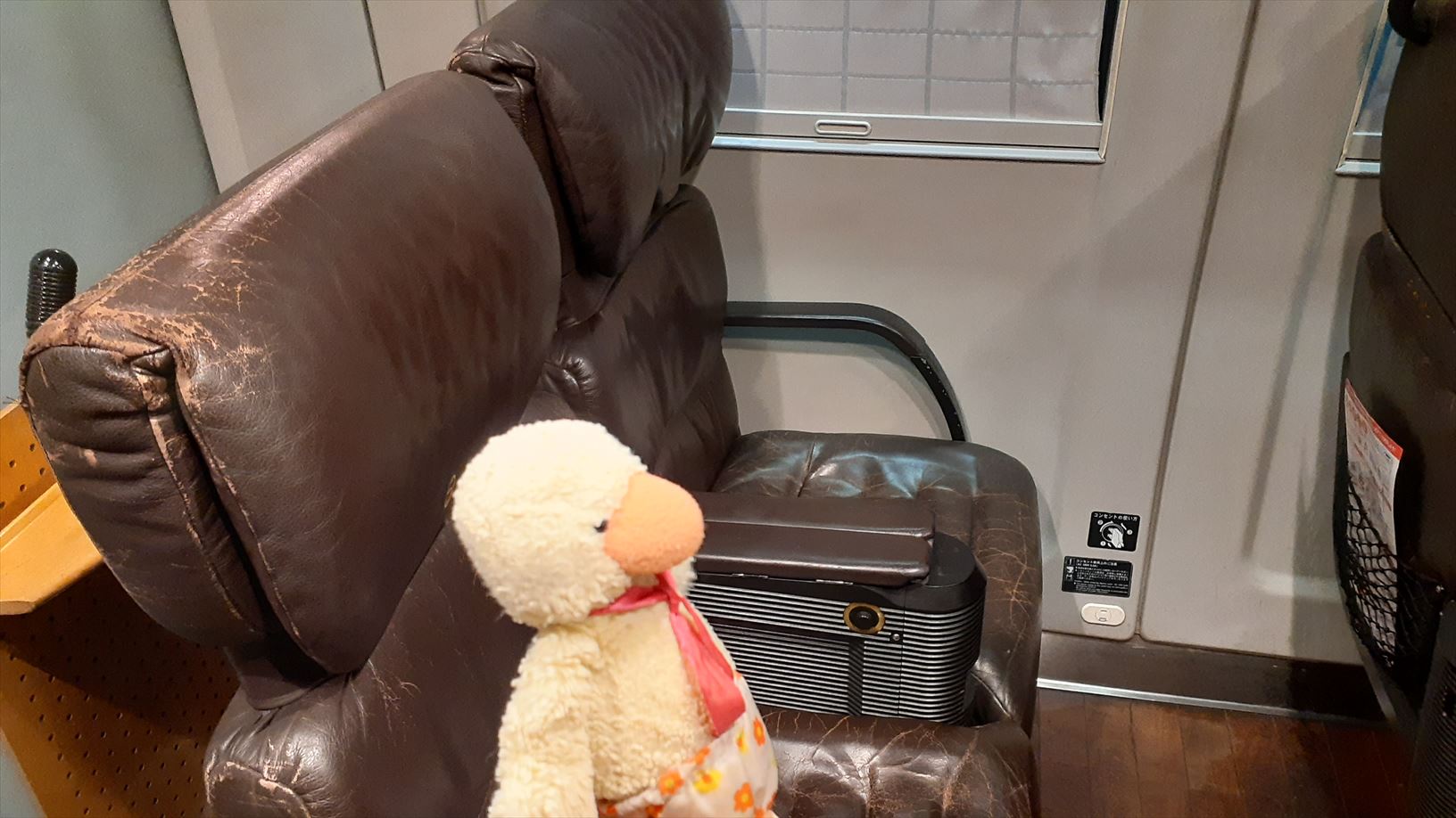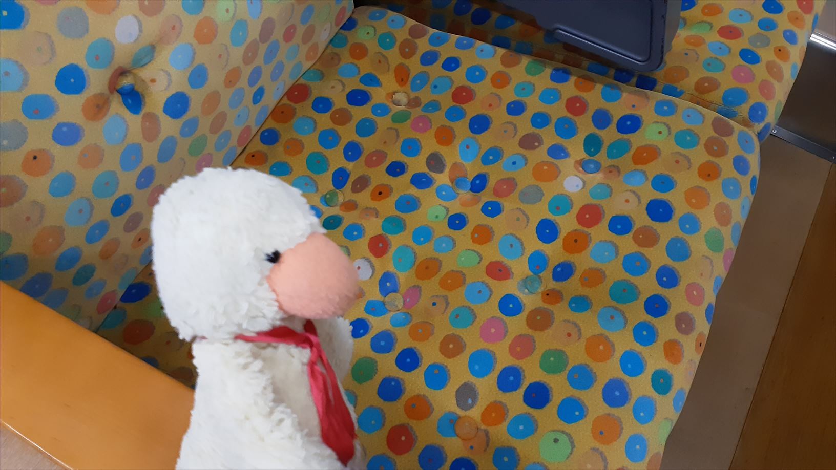 車内は乗る位置によってシートやカーテンの模様が変わります。