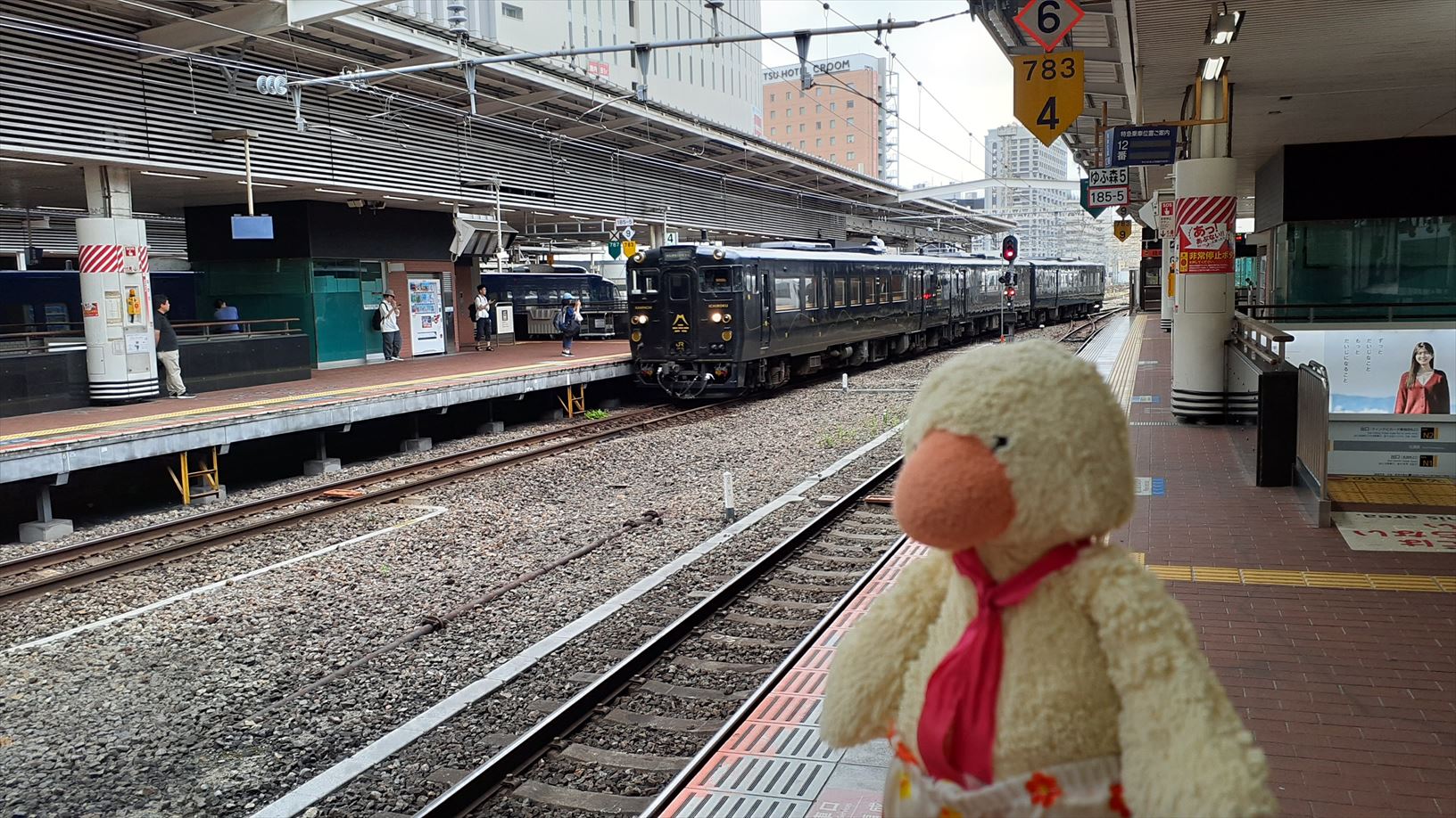 後ろには、特急ゆふ号も。。流石に乗ると訳わからん展開になりそう・・・