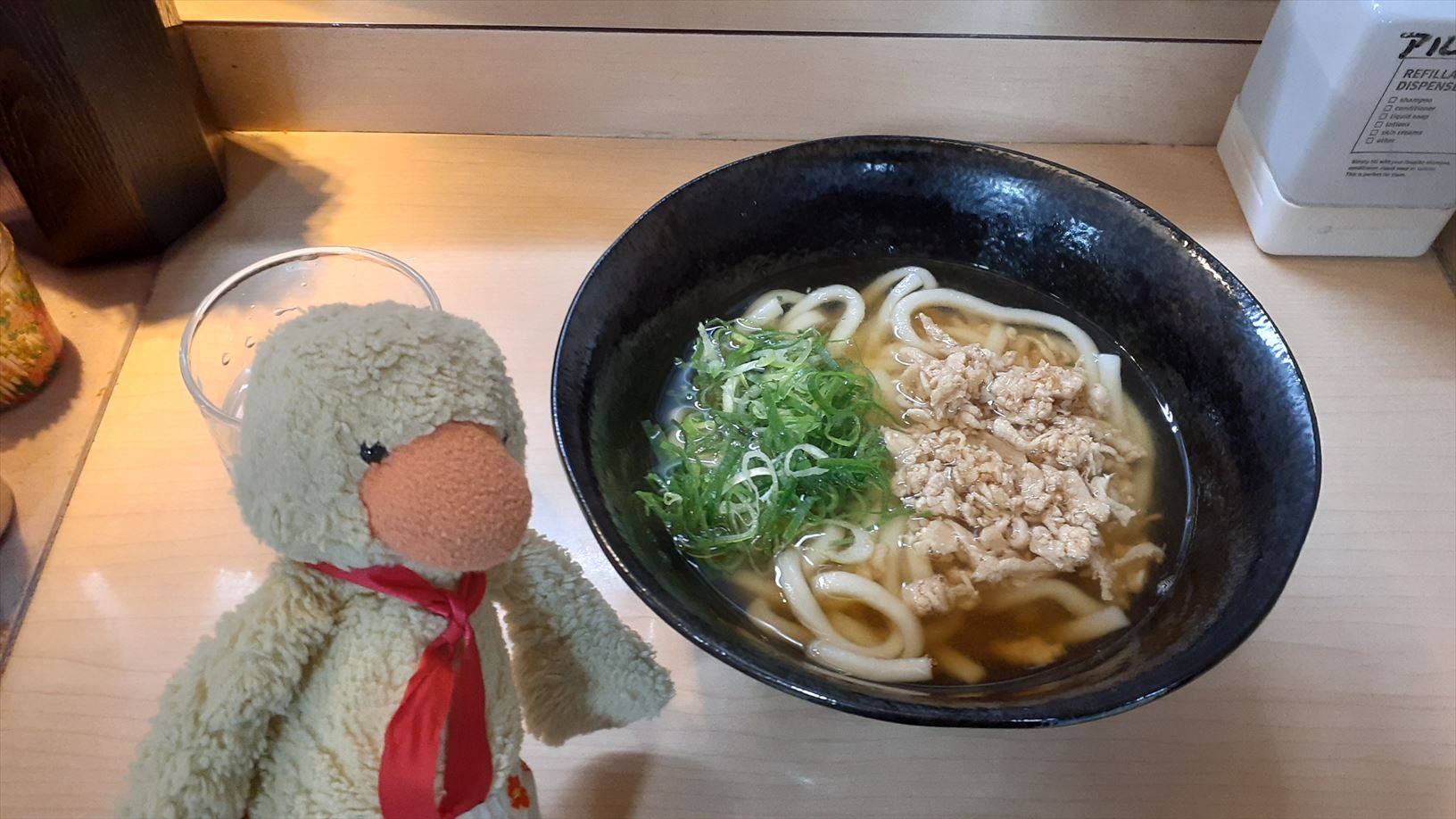 九州最後のご飯は、かしわうどん。