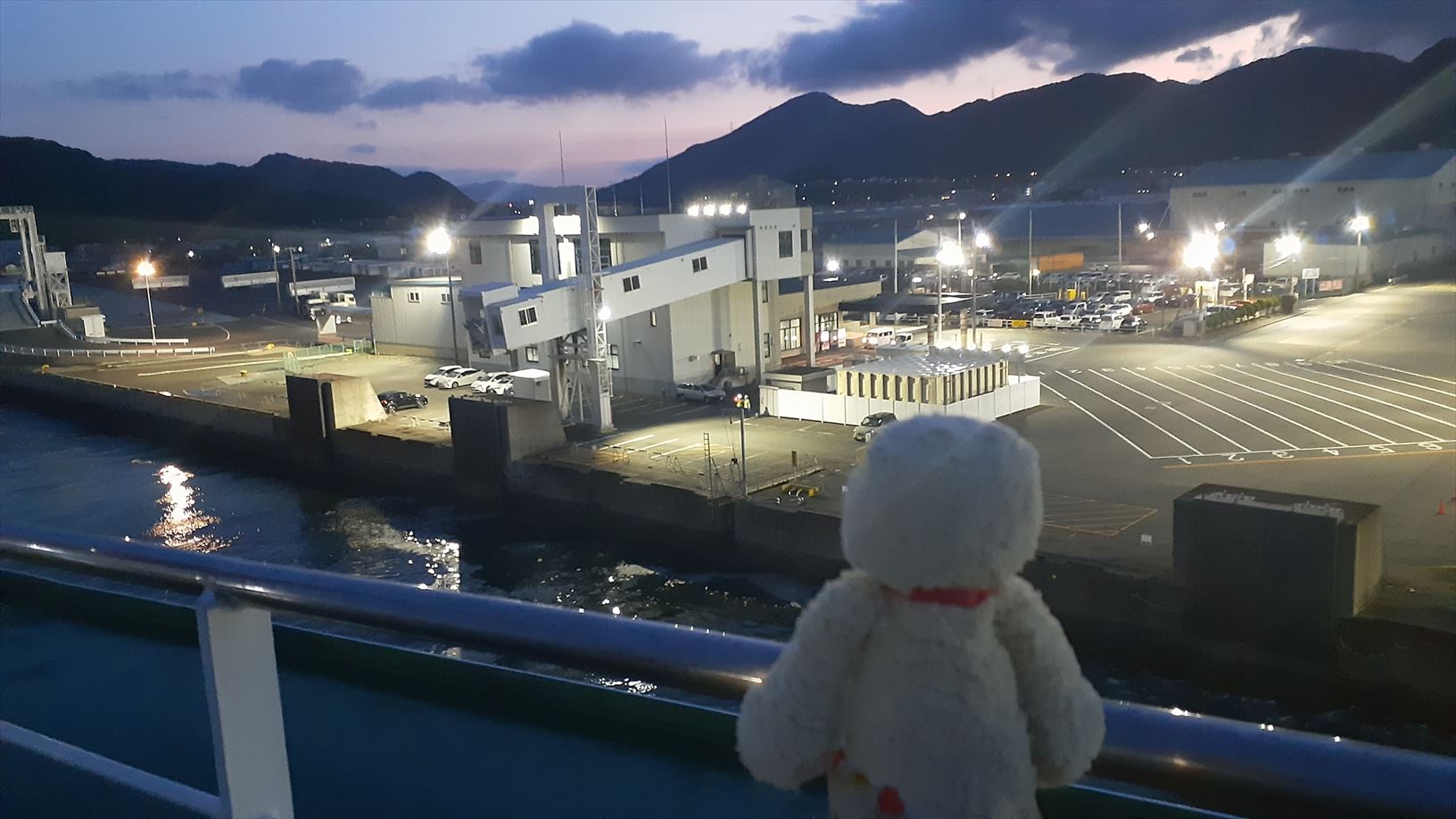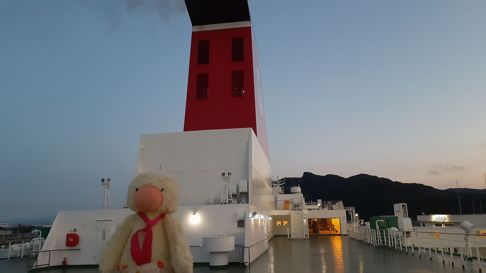 フェリーのレストランで食べるか、軽く済ますか考えながら・・・