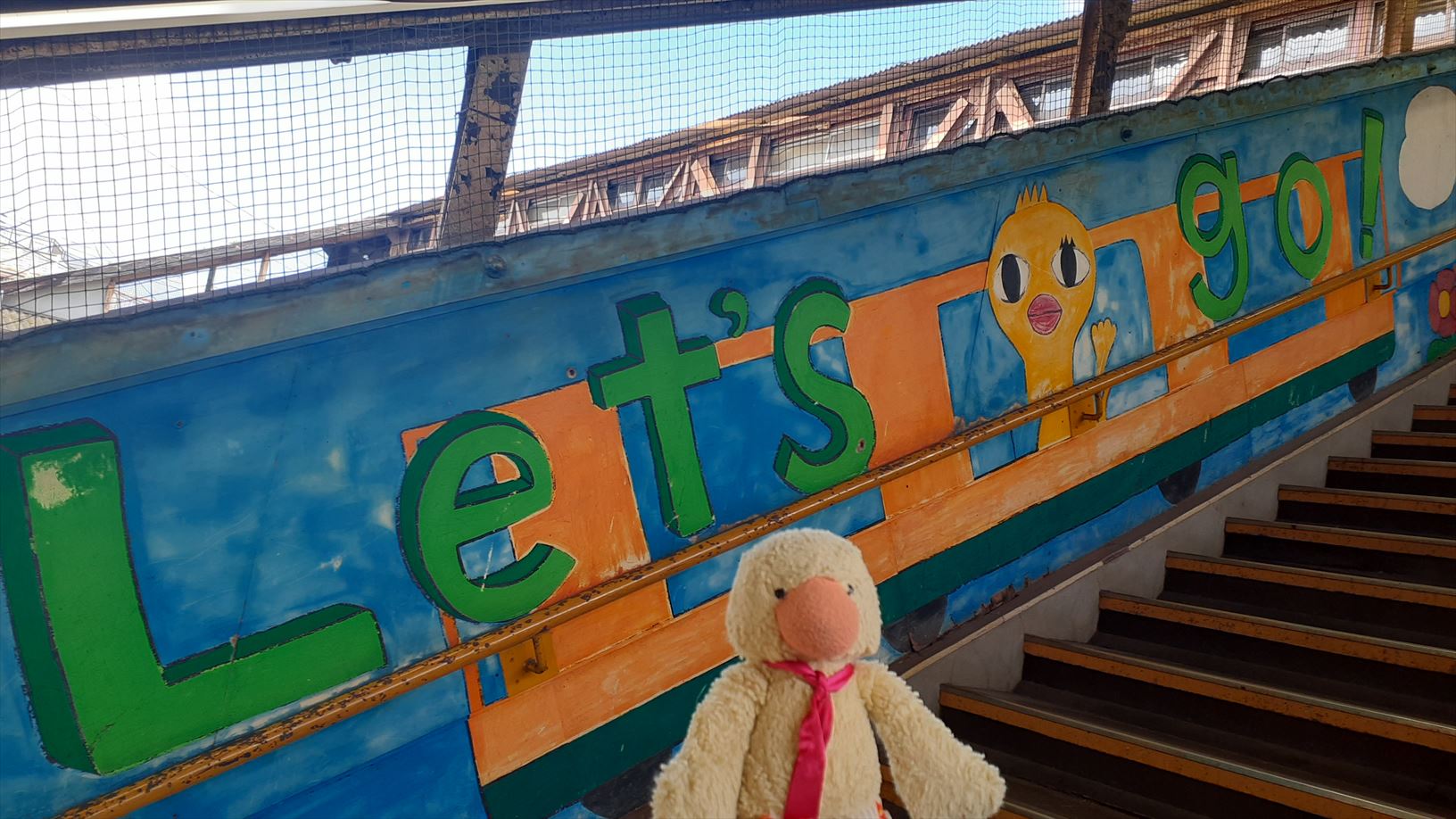 こ線橋の壁画。。これはアヒル?