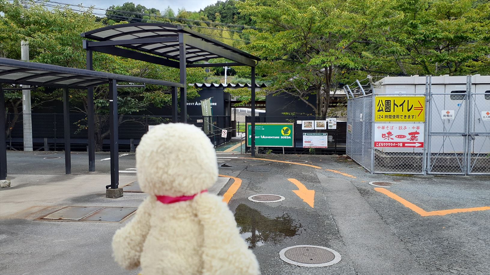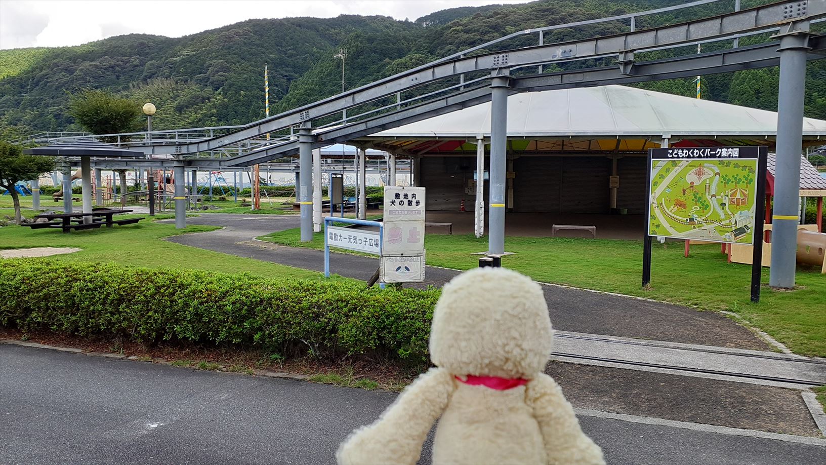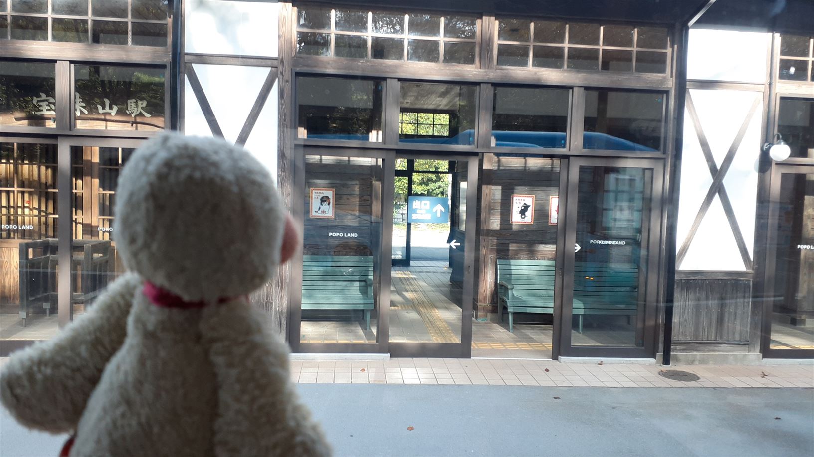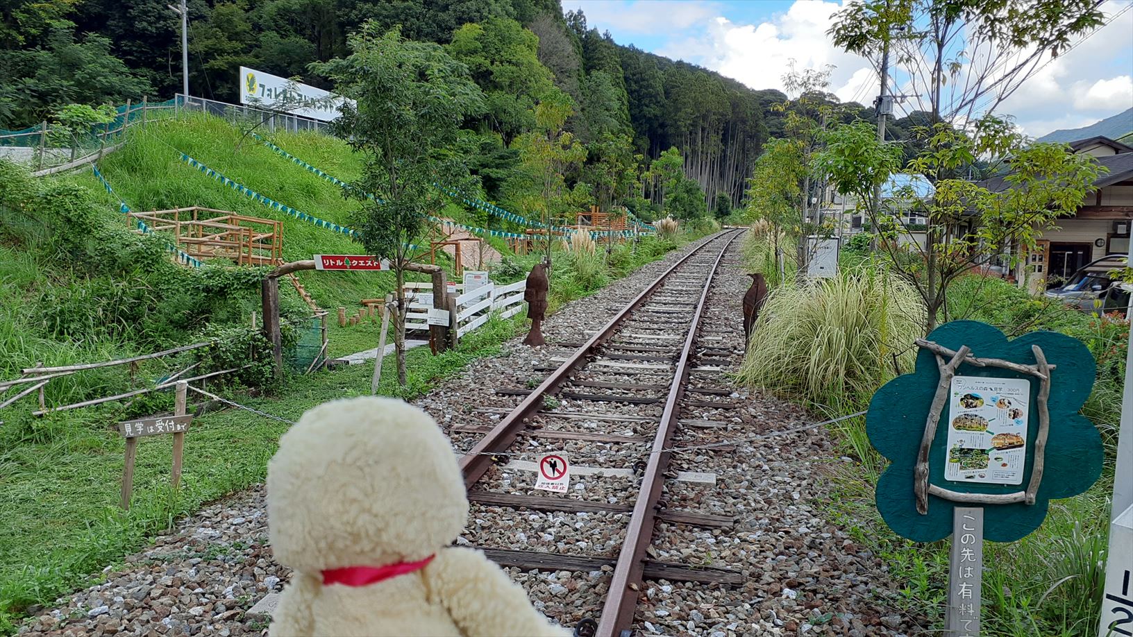 鉄道駅へのアプローチの看板の裏面が・・・そのままやのぉ。