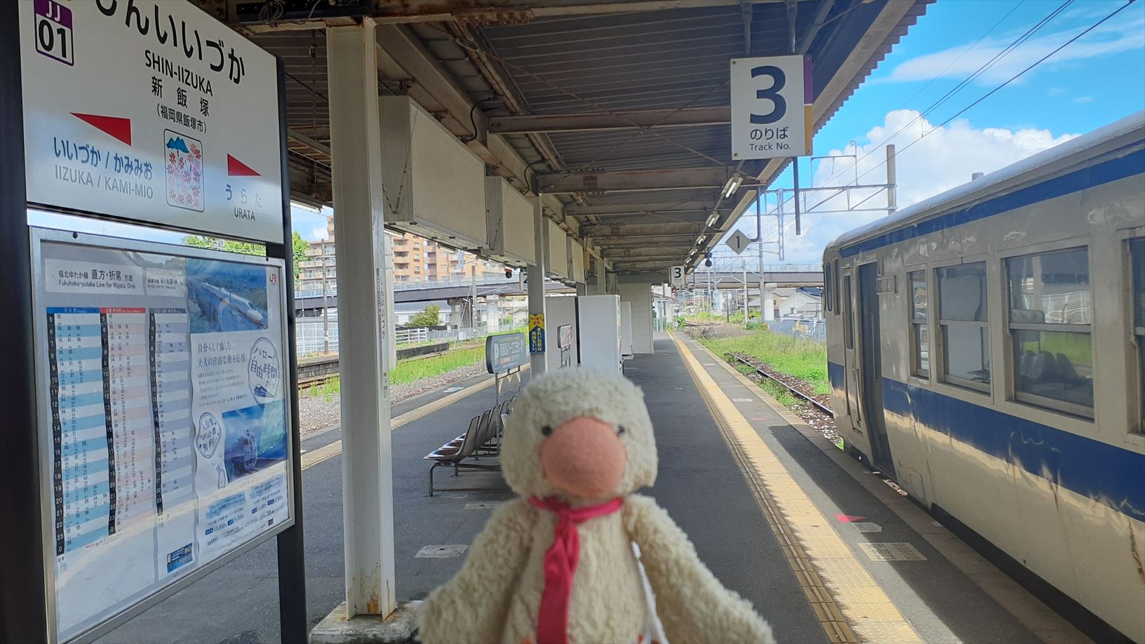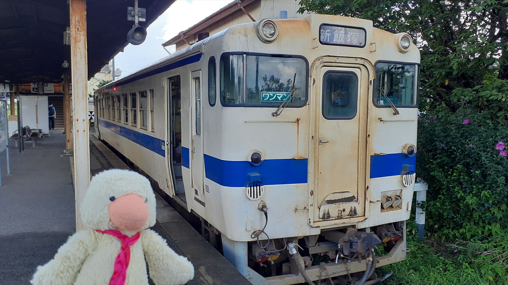 中間駅は4駅だけの路線ですが、まめにチェックインして新飯塚駅に到着。