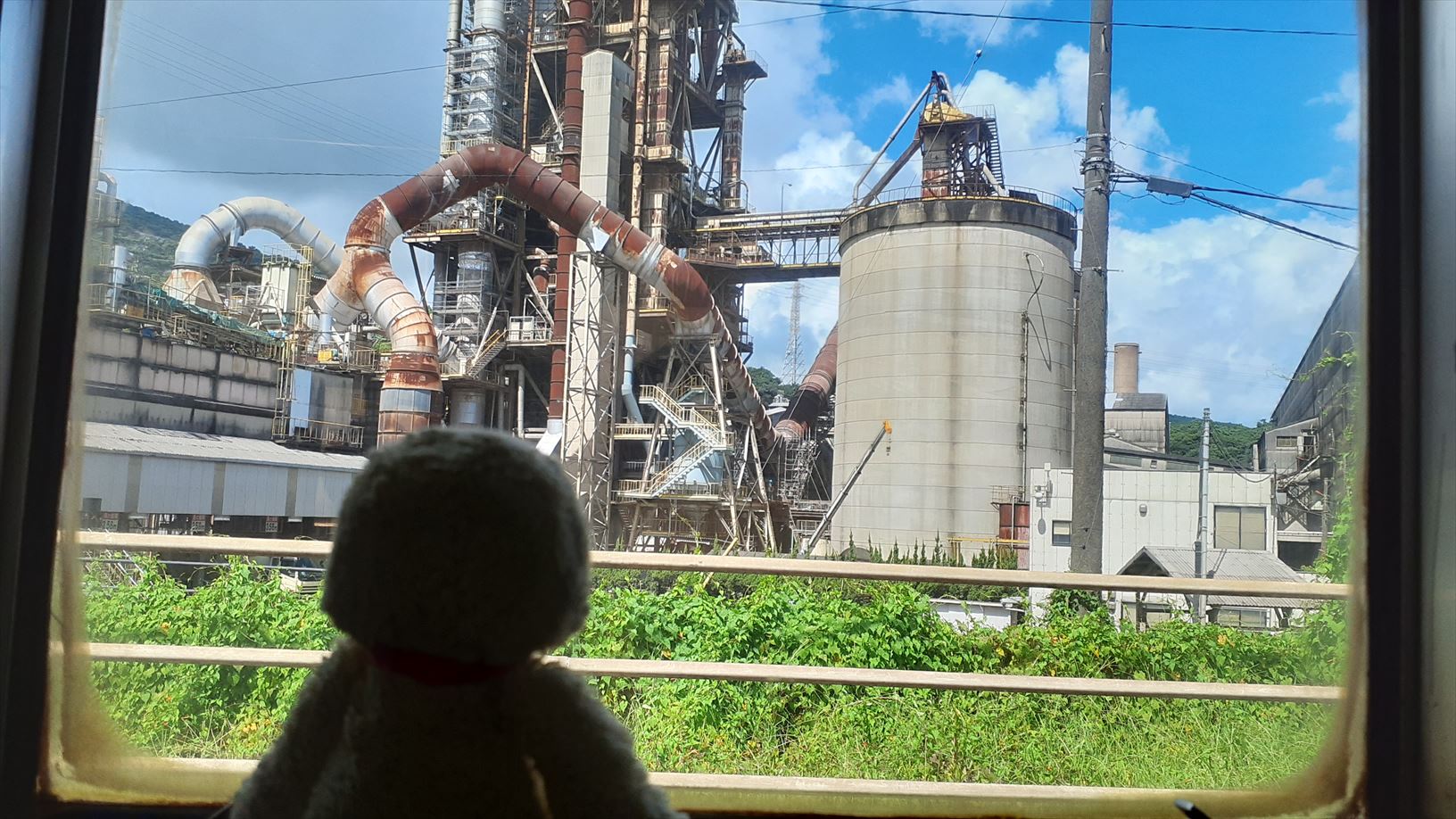 途中の船尾駅のお隣は、セメント工場かのぉ。