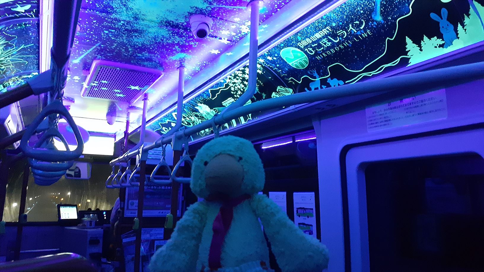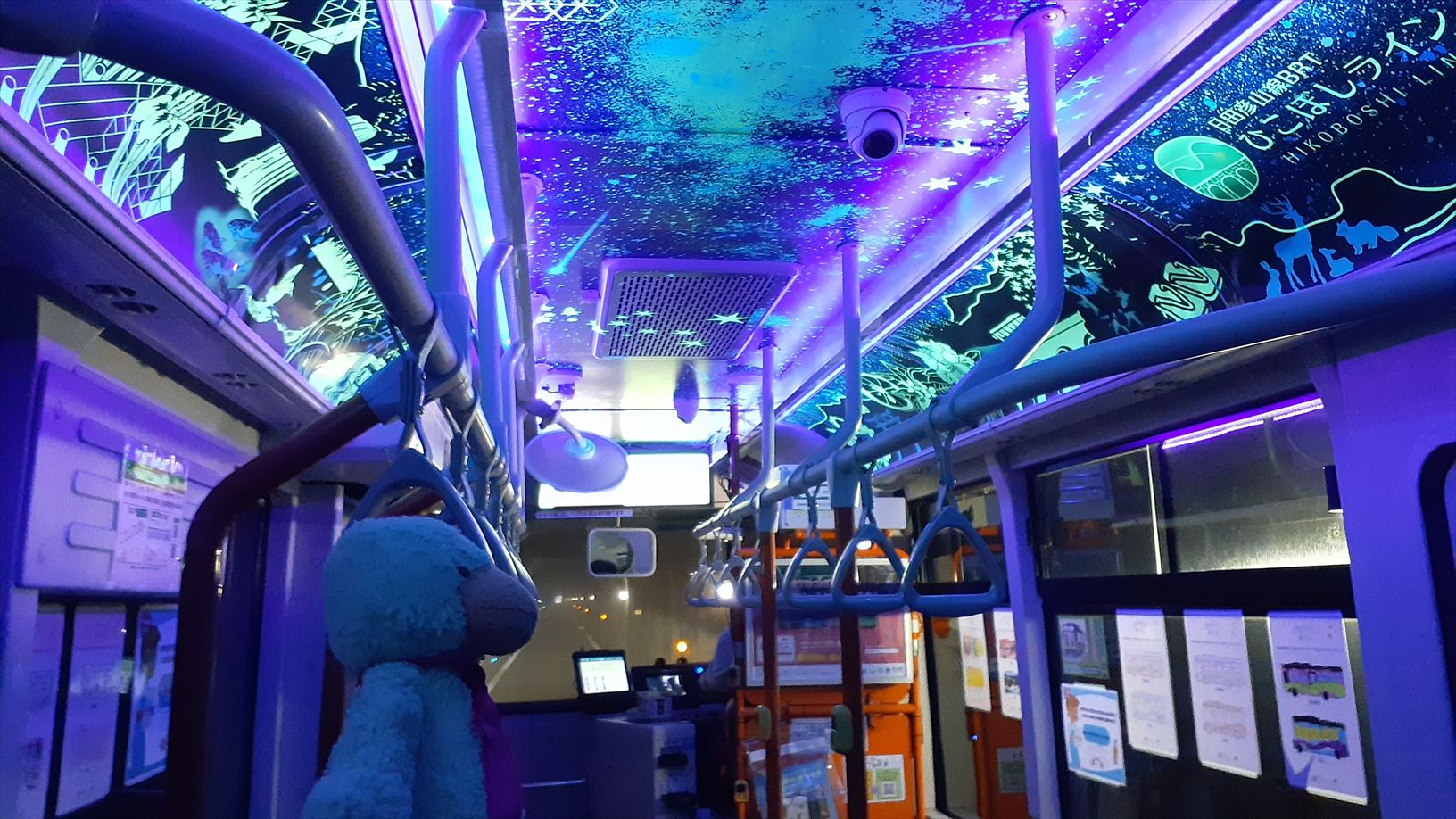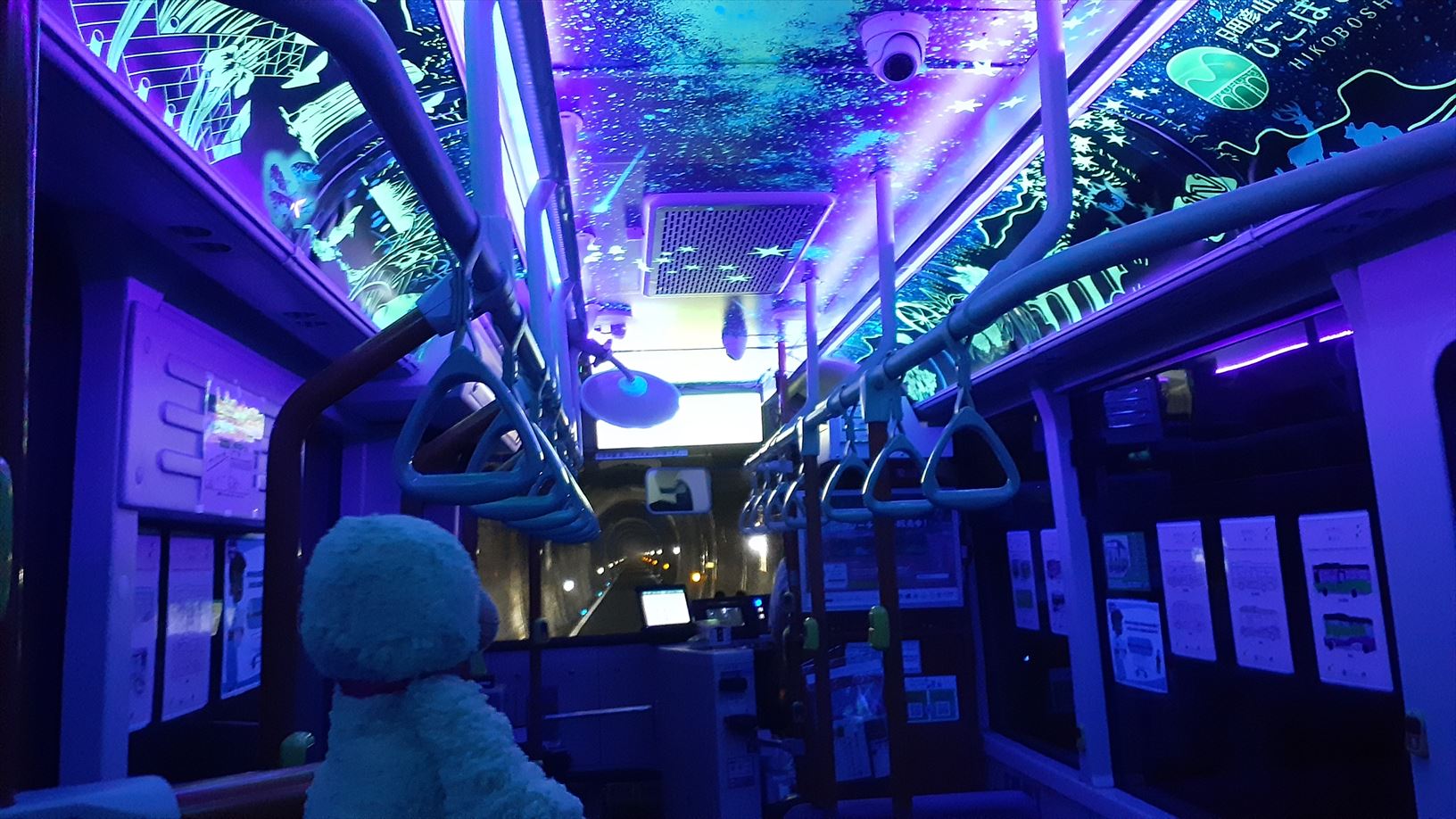 長いトンネルに入ると、この通り!(一部のバスだけで実施)