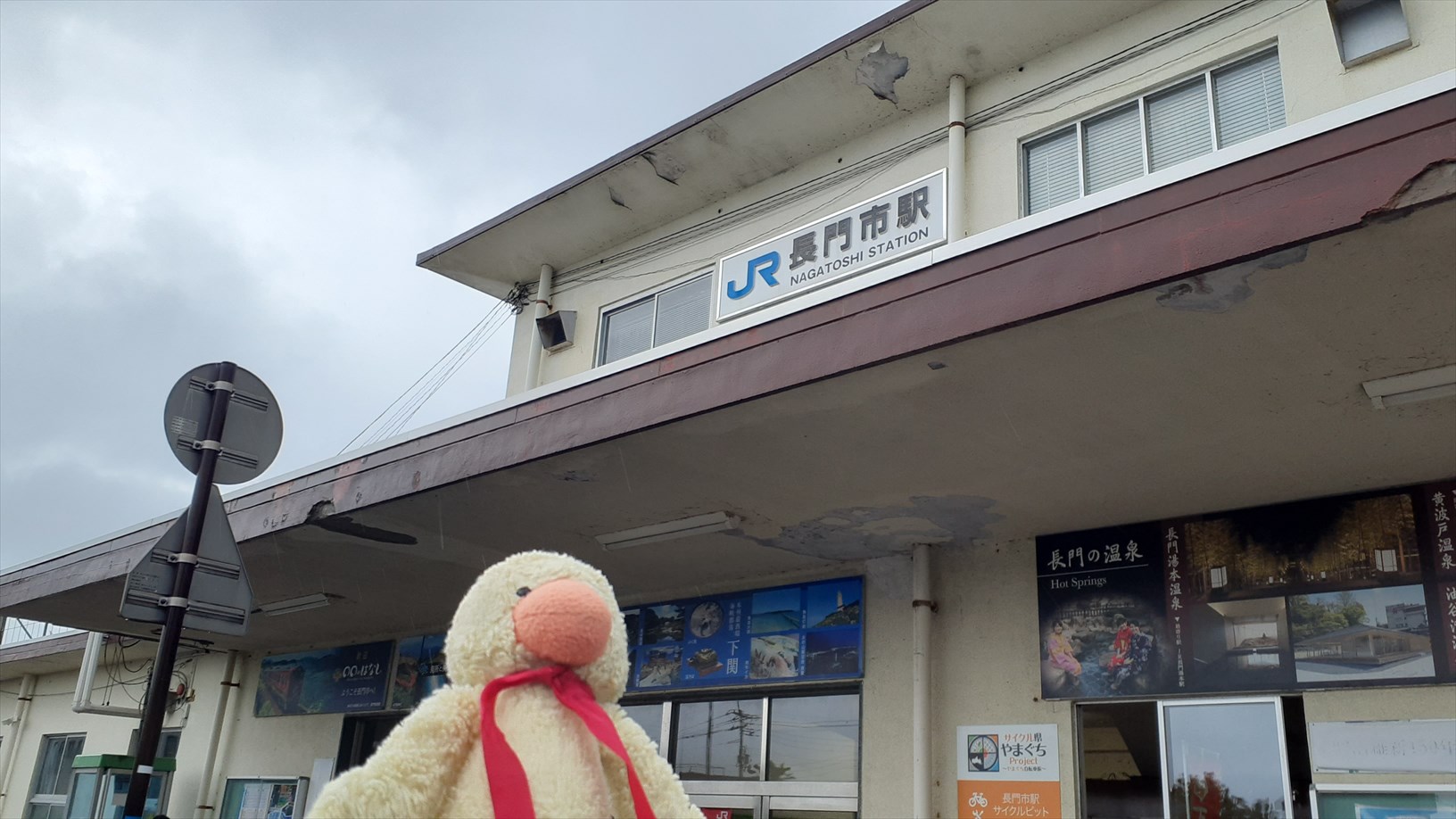 長門市の手前、こちらは温泉地の長門湯本駅。いい佇まいの駅舎。