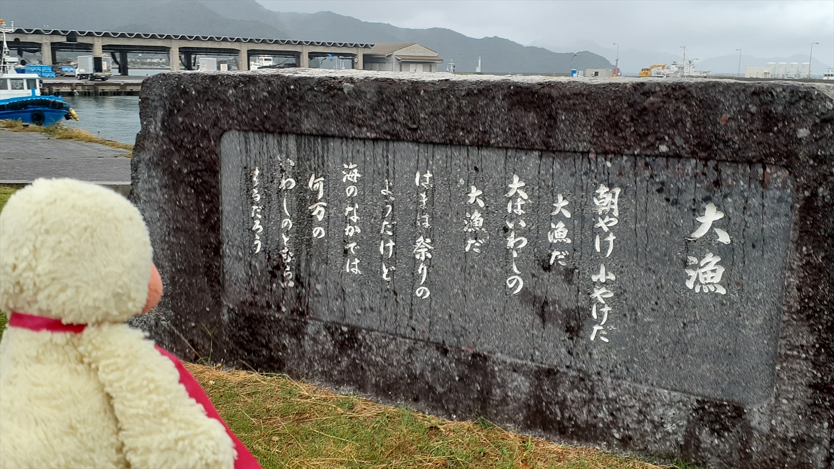 お隣の港にある碑。