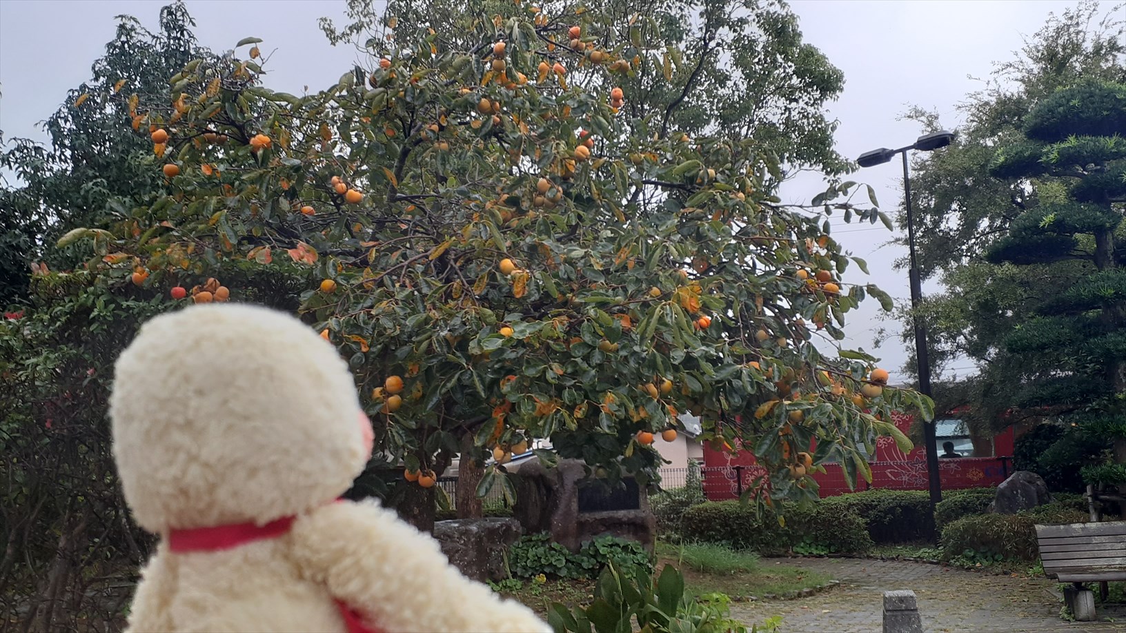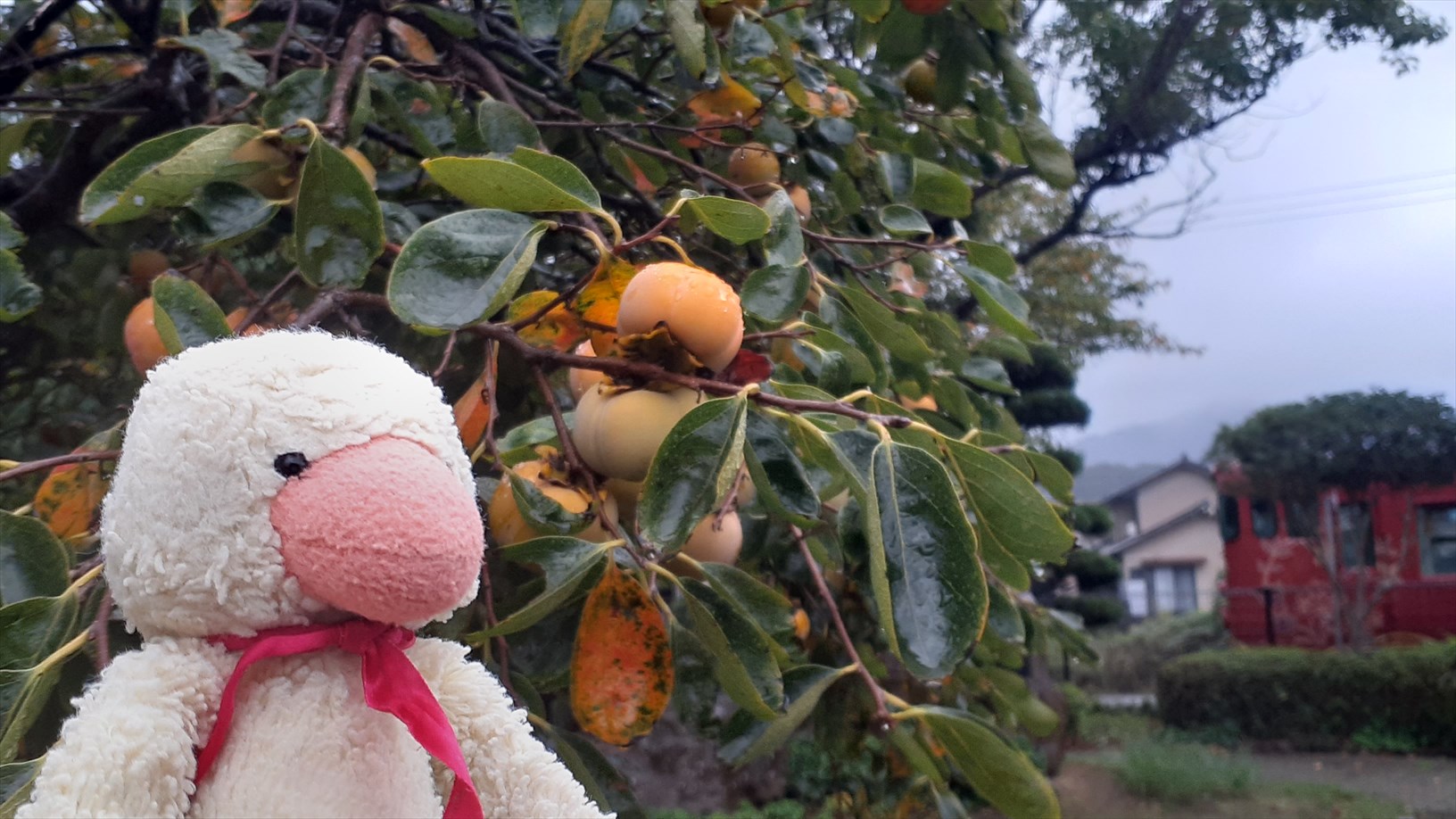 脇には柿の木。