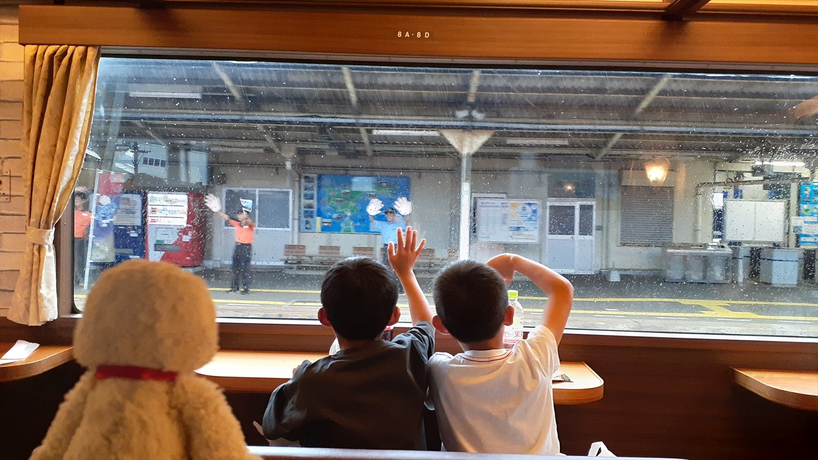 長門市駅からは山陰本線で下関駅へと向かいます。(お子たちは、前のお席)