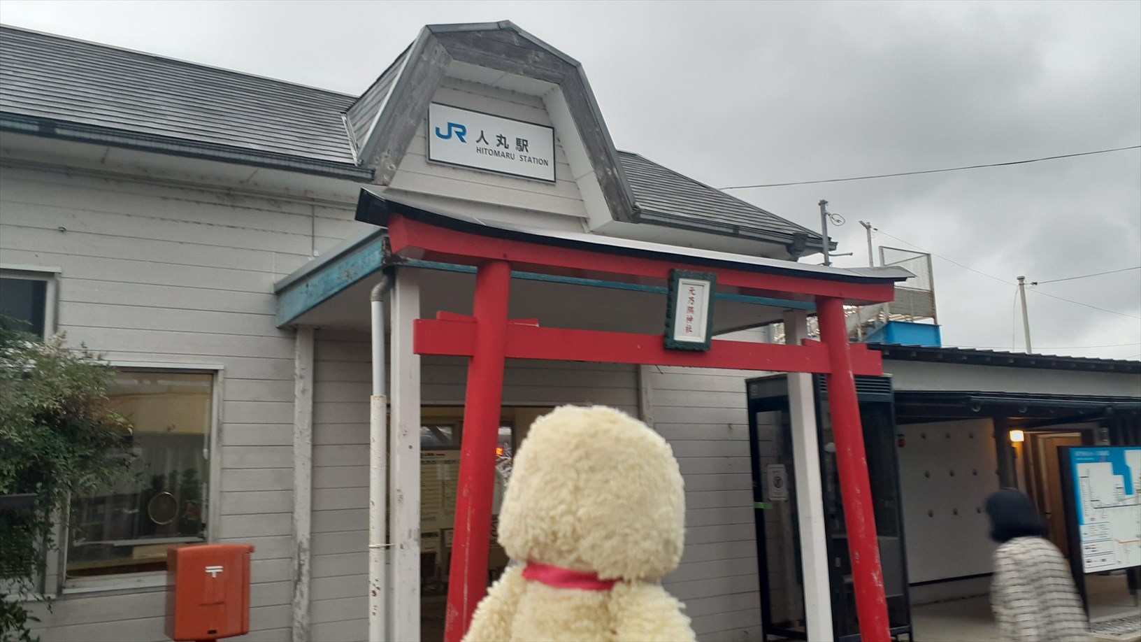 で、観光列車にはありがちの長時間停車。人丸駅。