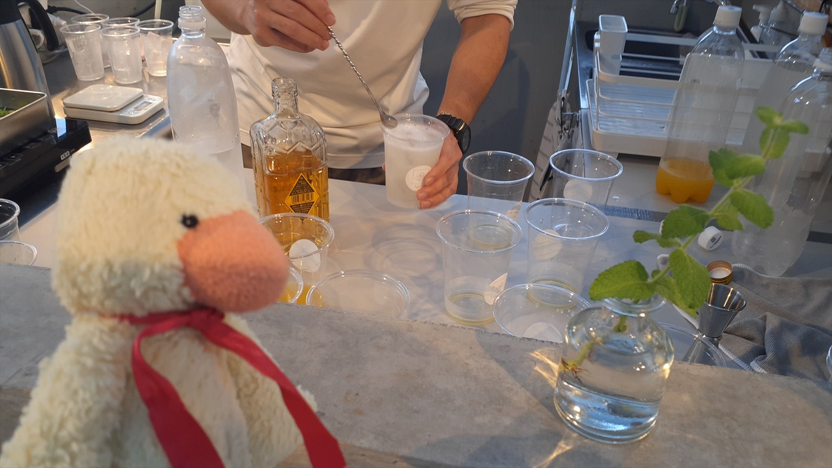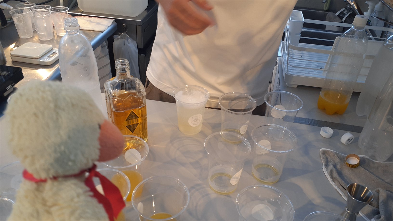 もう、おとなしく飲もう!(お子たちも前のお席でお菓子をつまんでる)