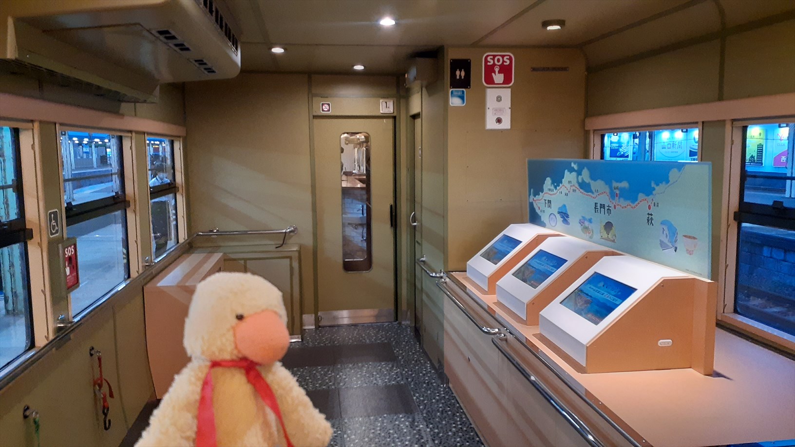 降りる前に、再び1号車を確認。。。フリースペースでは、萩・長門・下関の観光案内もあります。