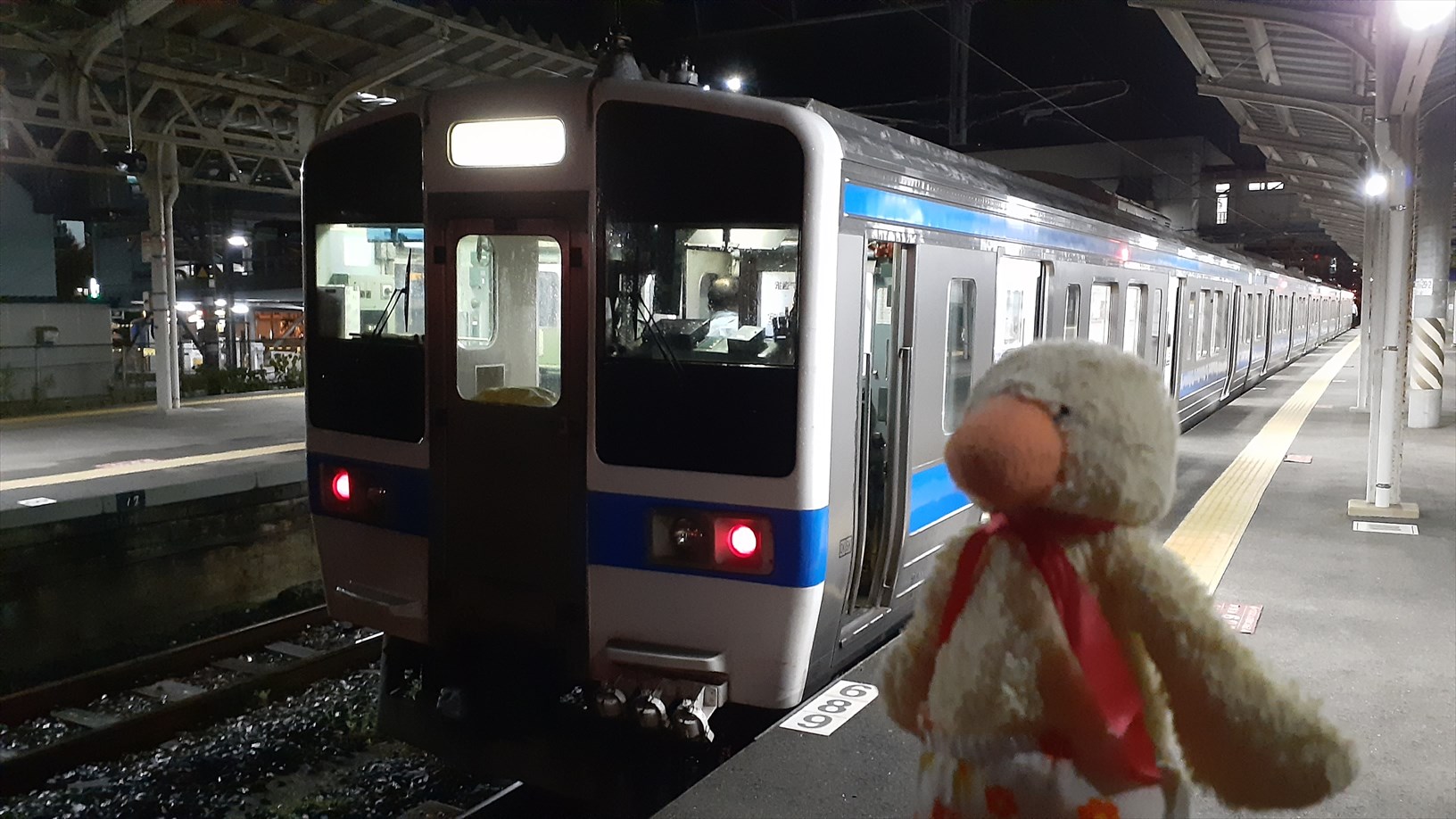 ・・・おっ!対向列車が来た。。早く乗ろう(ここで乗り遅れるとシャレにならん)
