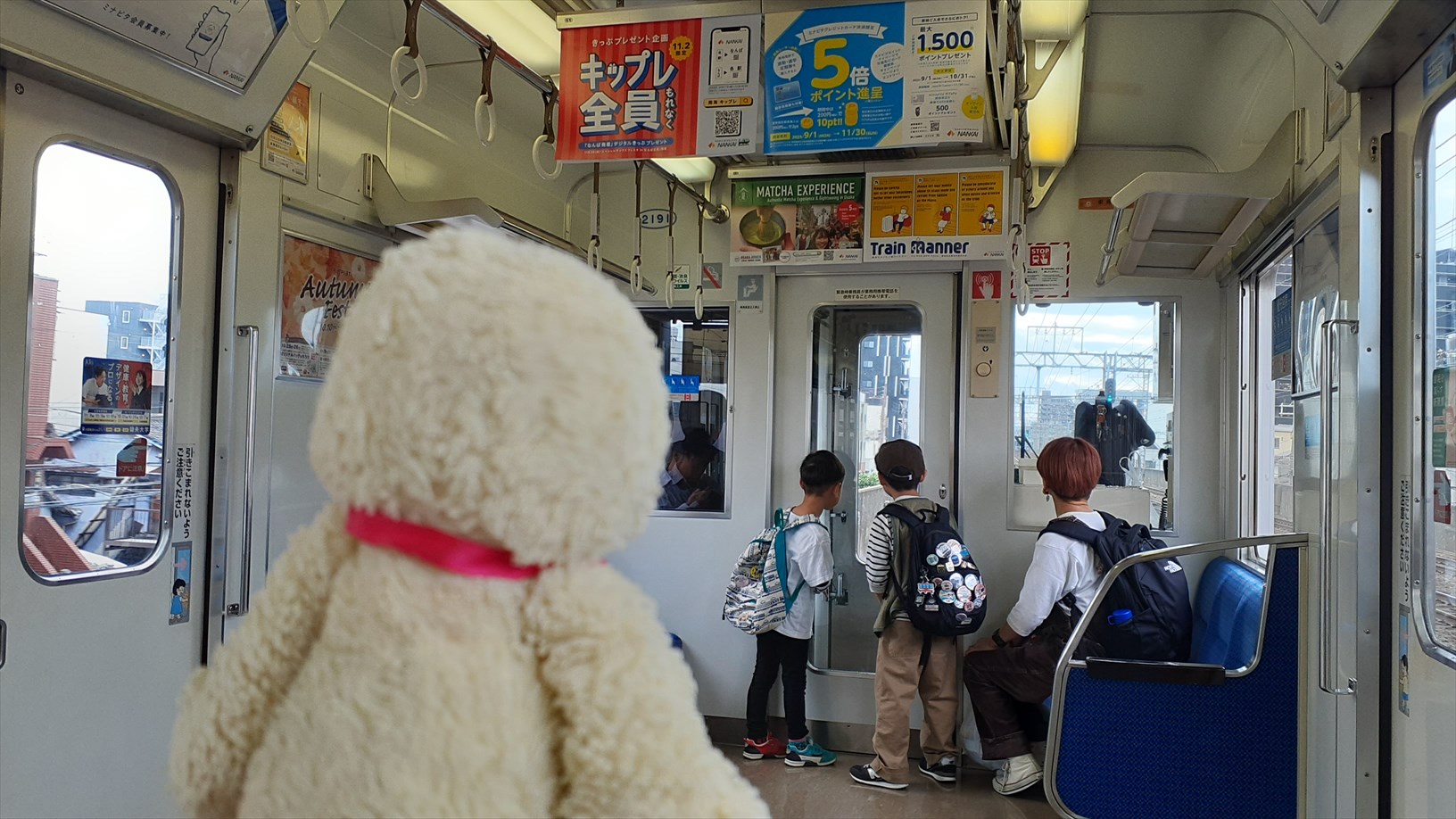 出発すると、先頭車両は・・・よく見る光景。(温かい目で見守ります)
