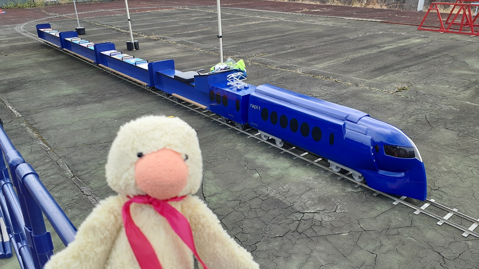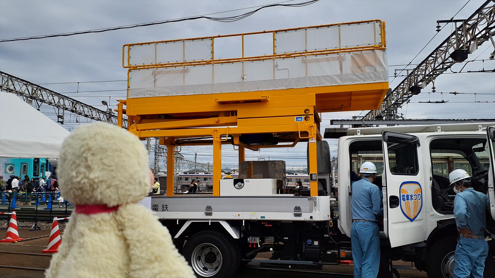 地味なアレですが、運転台(実物を使用)を置いている台が昇降式だということ。お子さんの背丈に合わせて調整してました(感心)