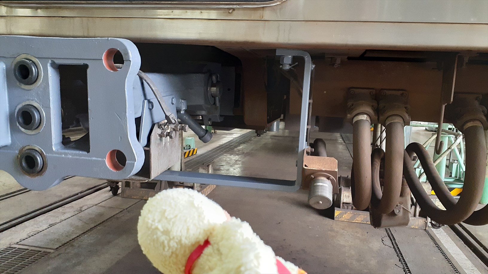 それにしても、車体を載せる仮支えって、けっこう小さいんやのぉ。