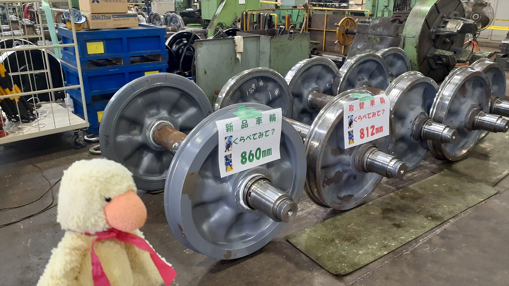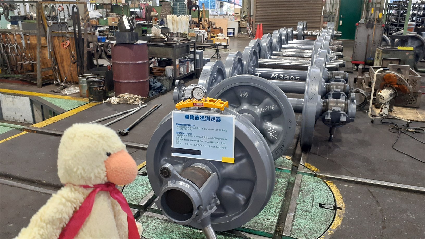 こちらは車輪の直径を測定する機器。。(たけじろうは、いつも5.6m径を磨いてます。)