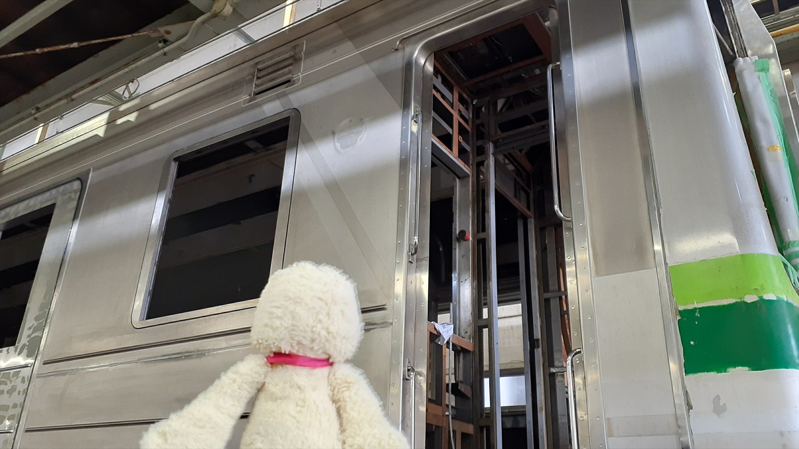 中間車両には殆どの窓が塞がれた部分も。。。どうなるの??