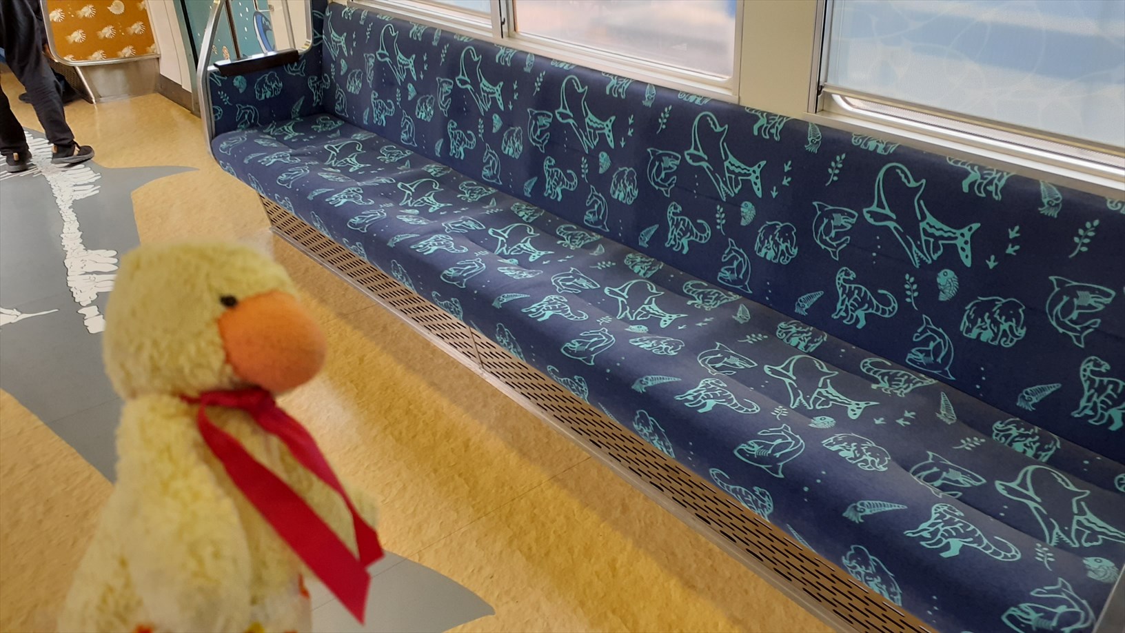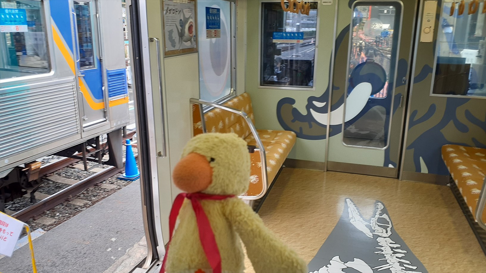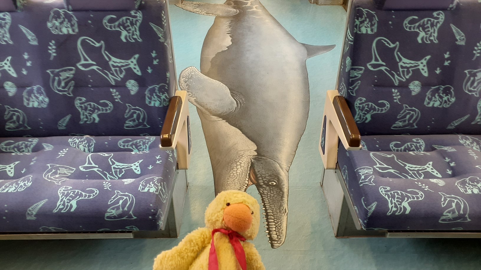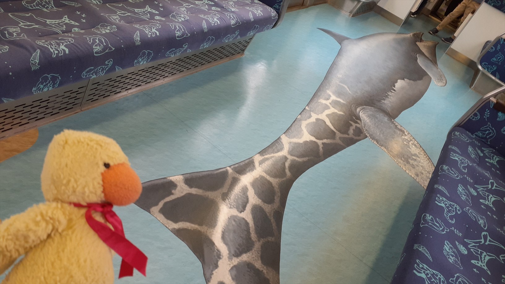 お隣はお魚たくさん車両。床にお魚。