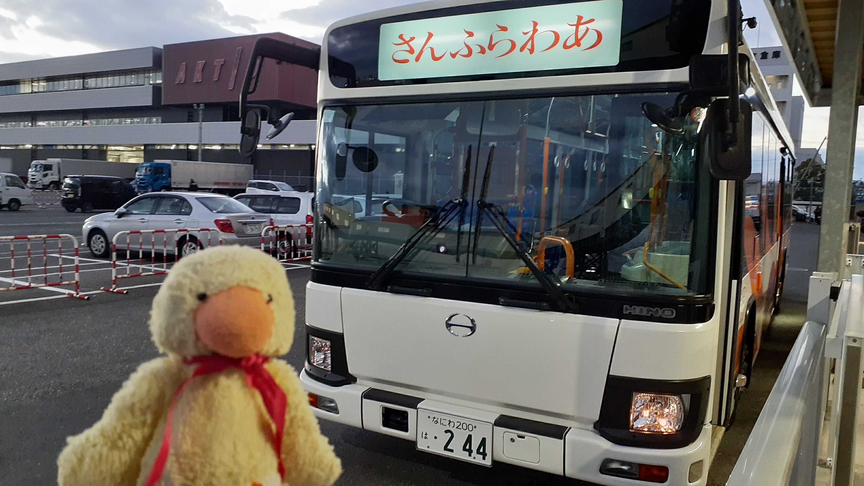 前回は志布志駅から日南線に乗りましたが、無料で乗れるさんふらわあライナーで鹿児島市街へ。