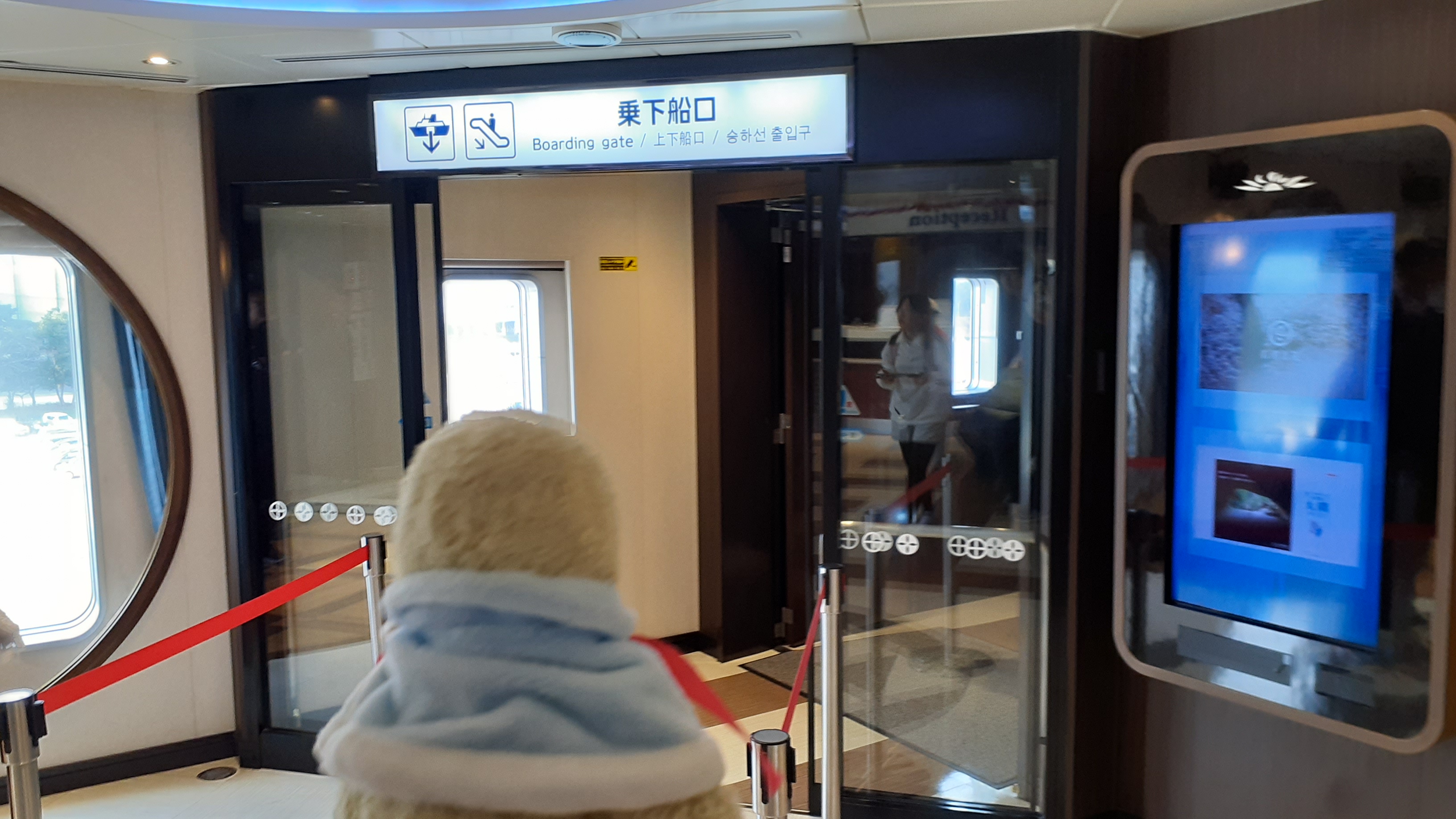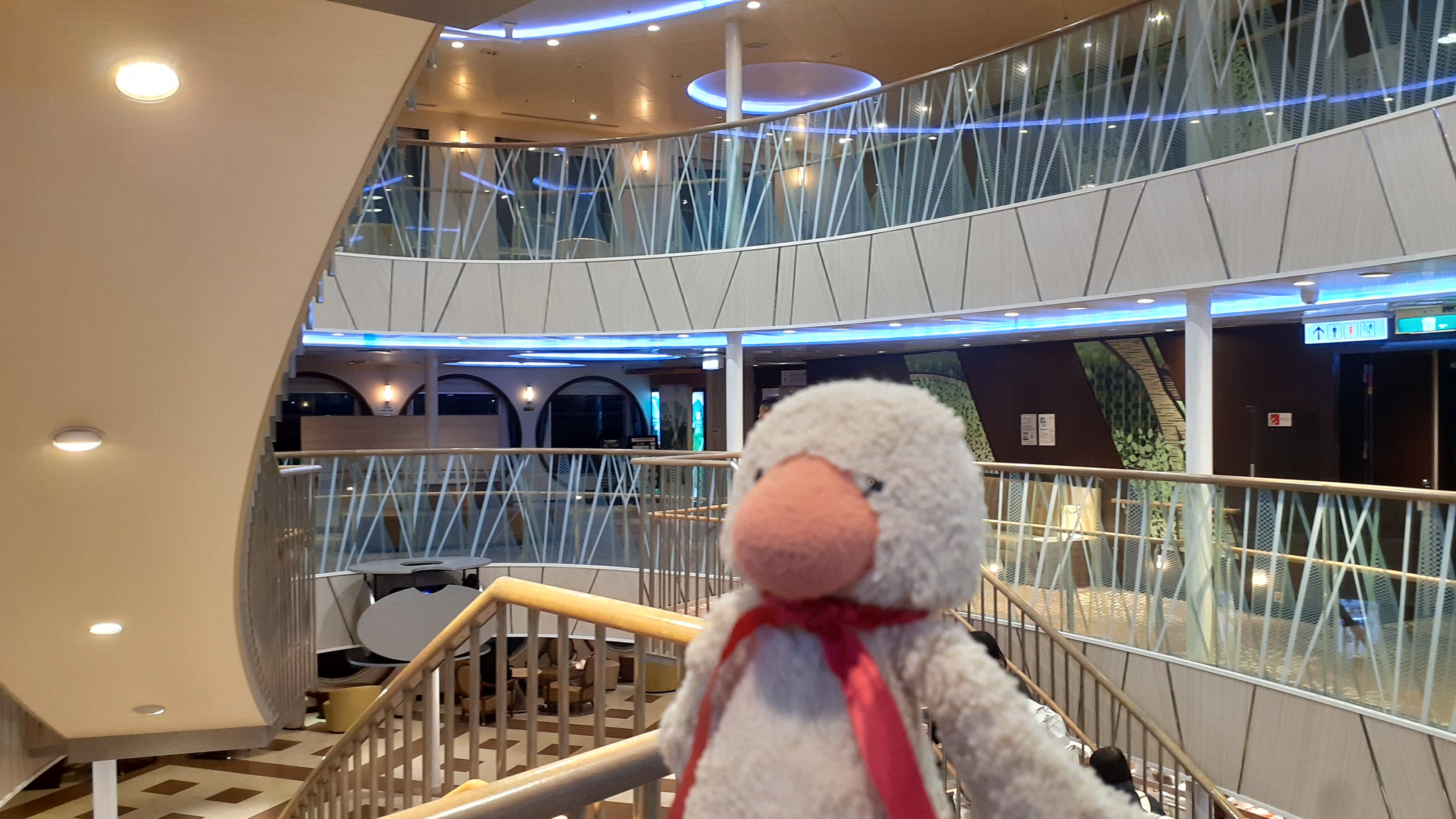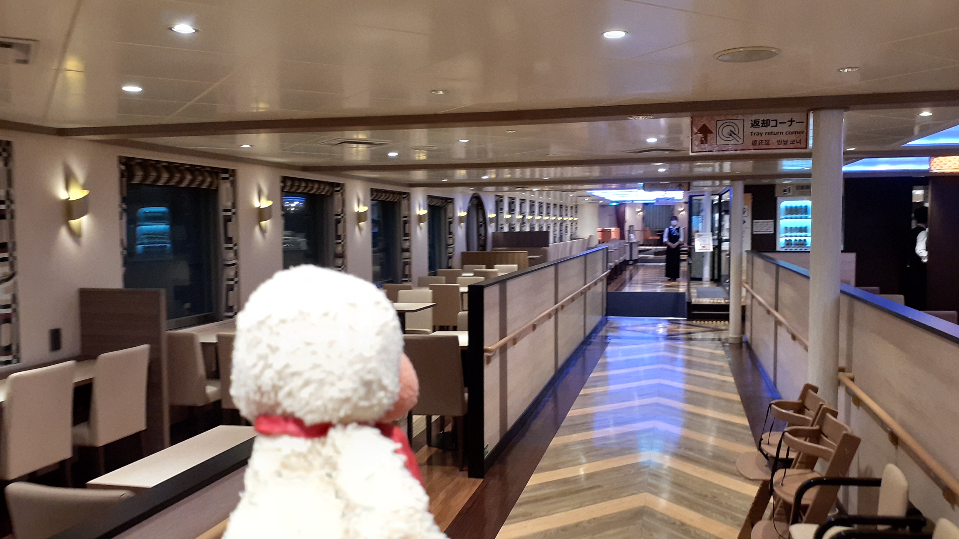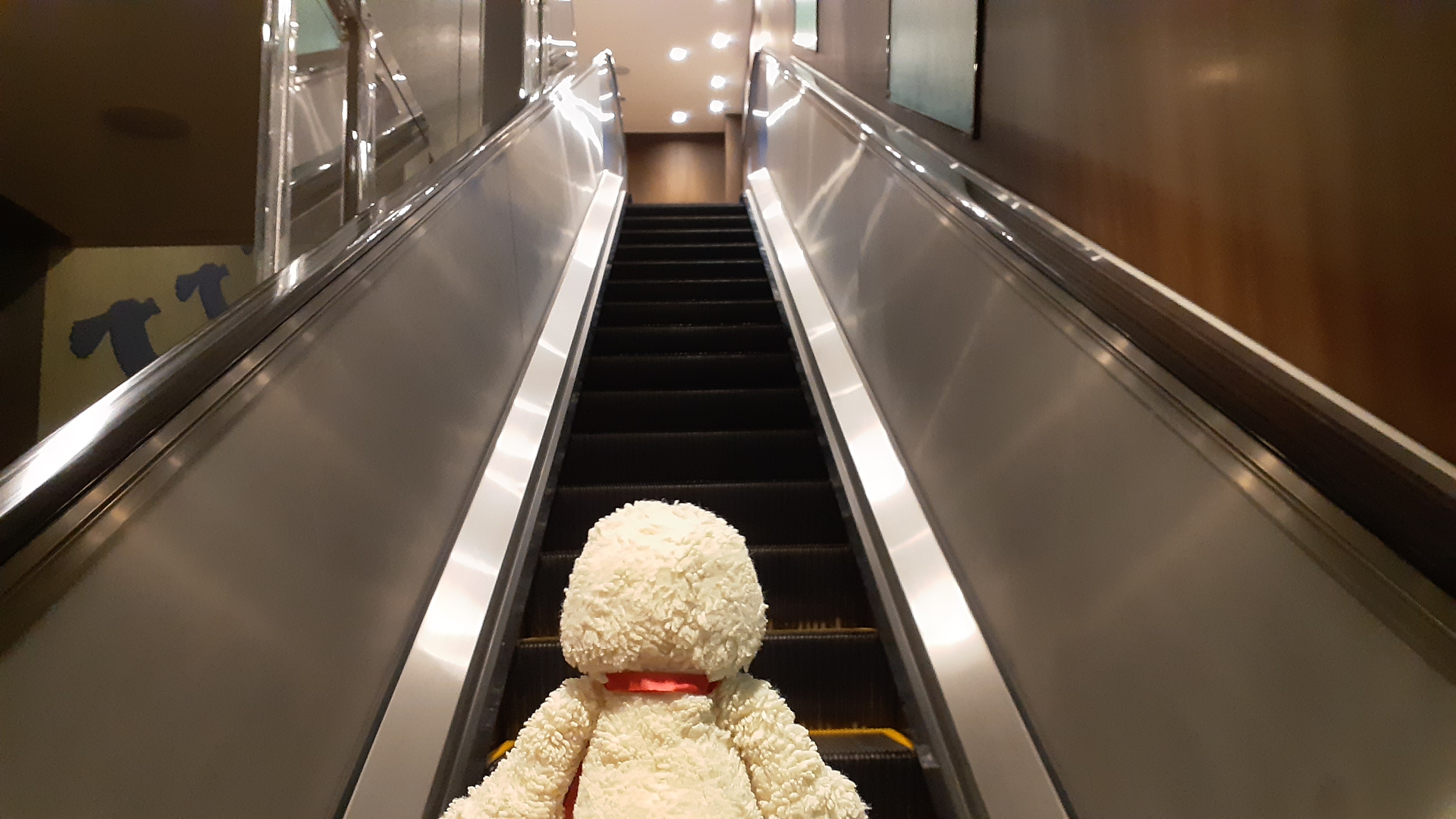 フェリーって、けっこう階数があるんやで。(エスカレーターで6階まで上ります)