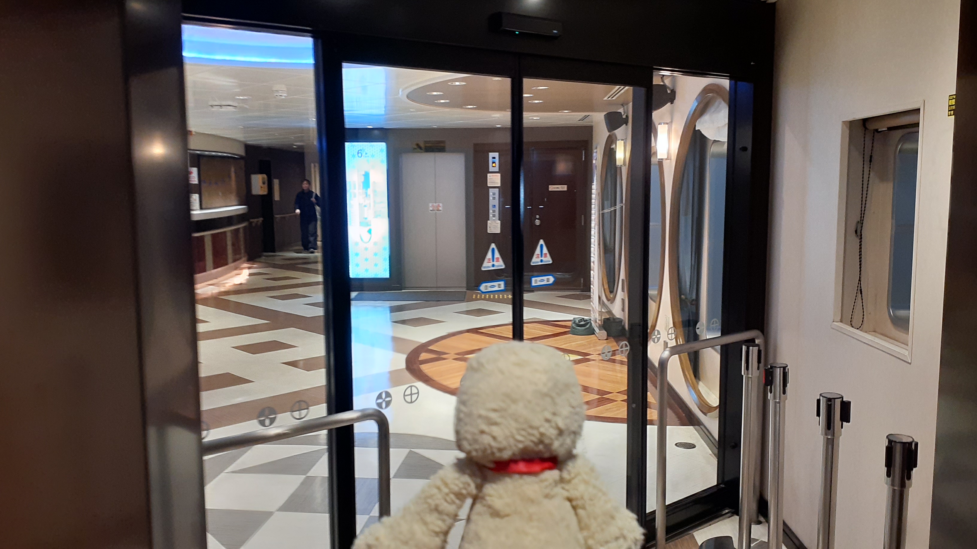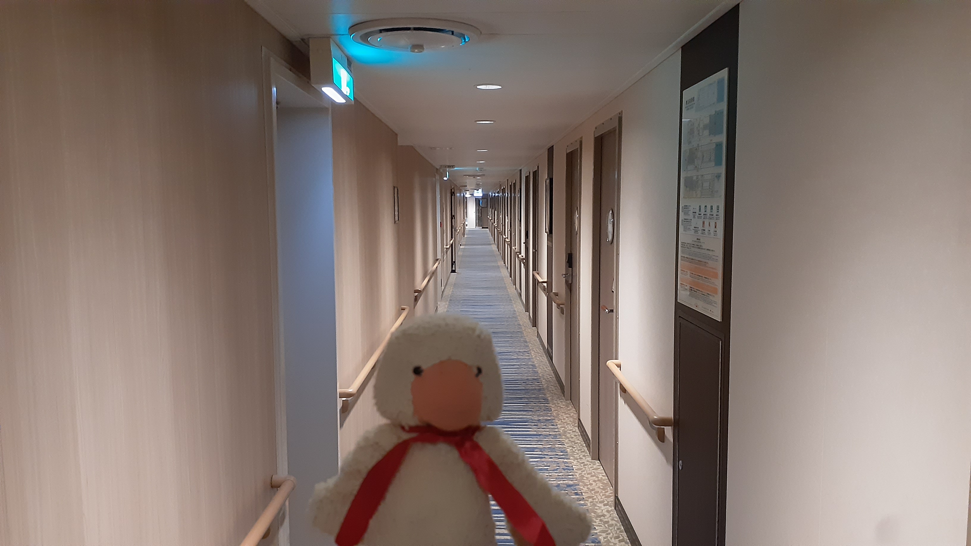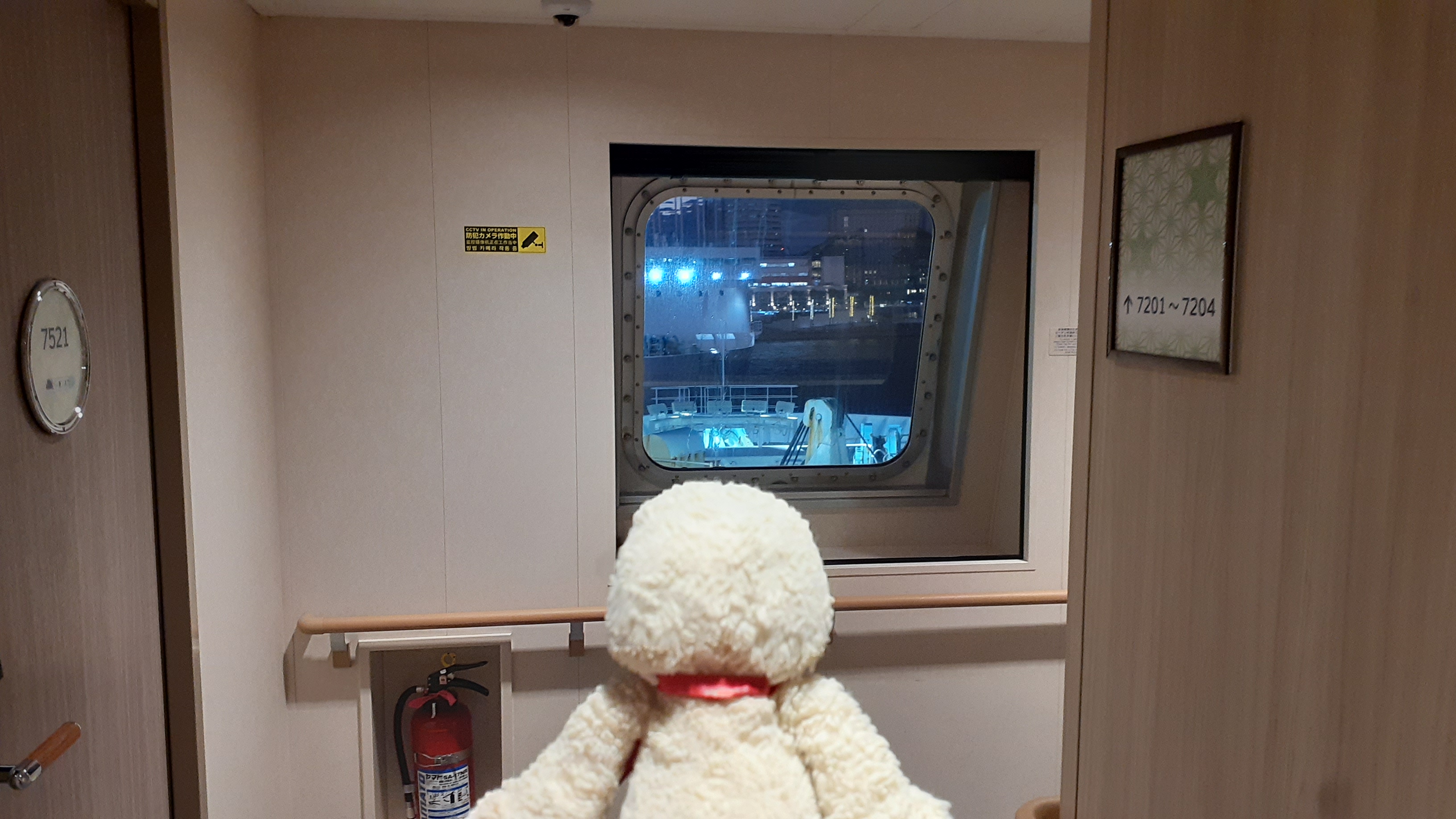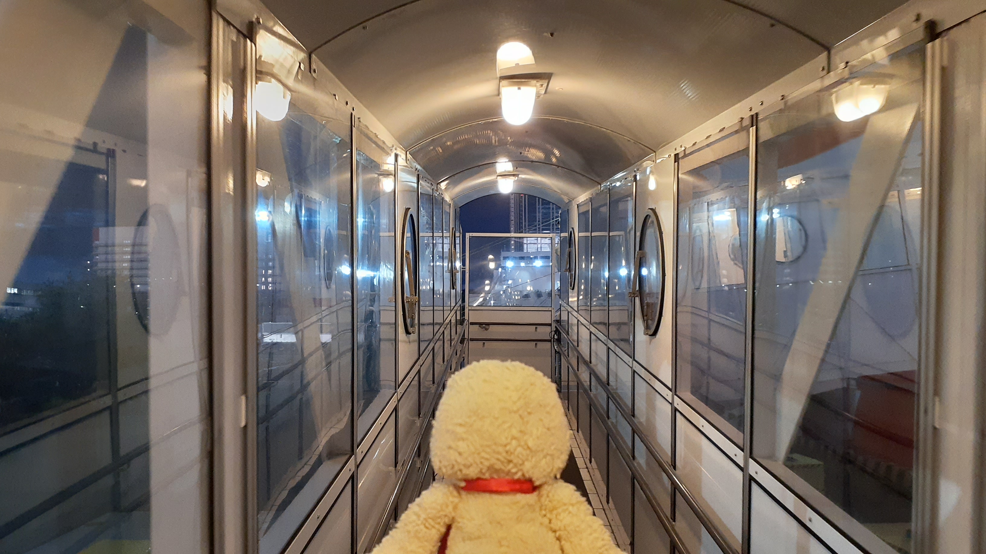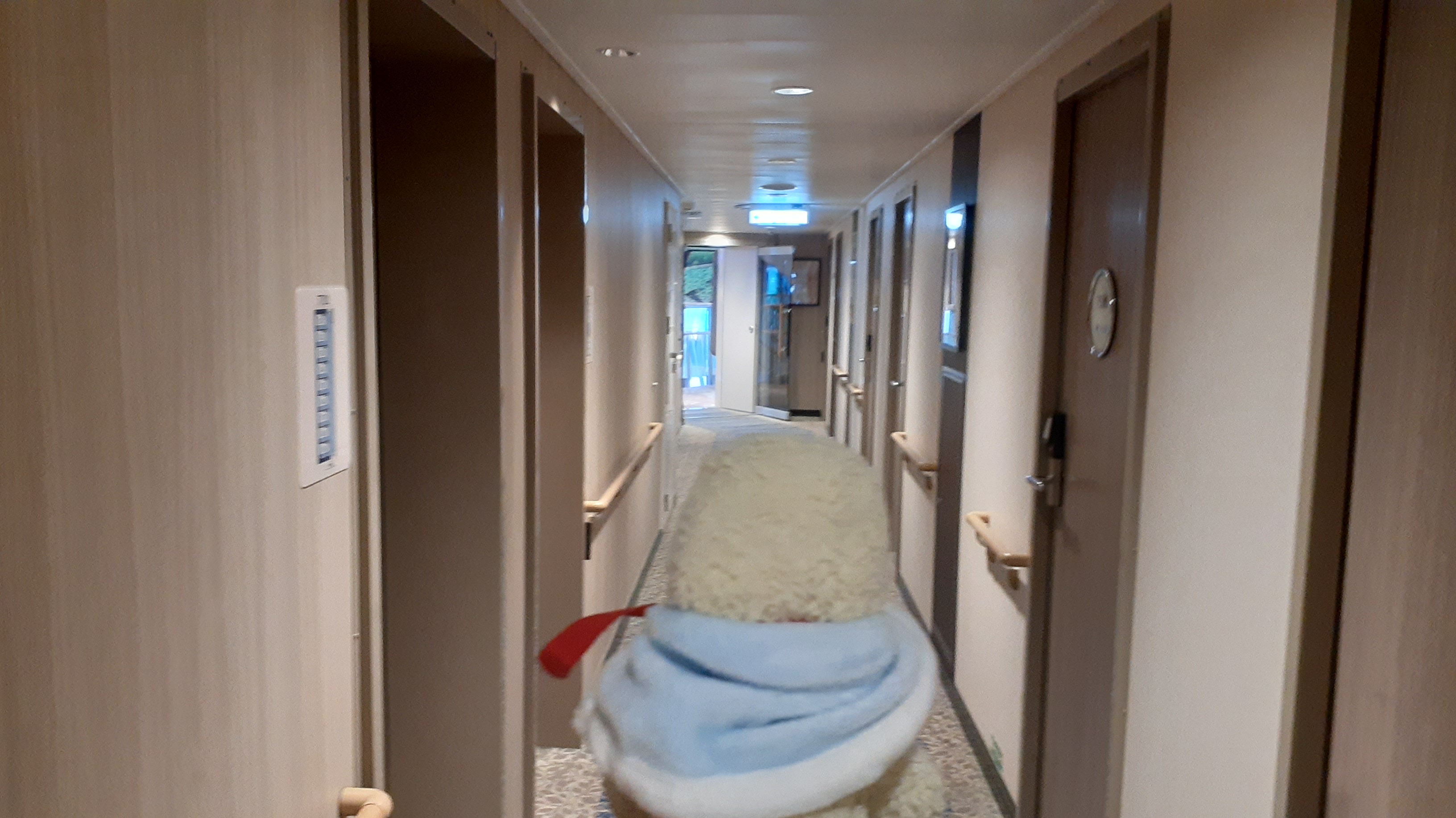フェリーって、けっこう階数があるんやで。(エスカレーターで6階まで上ります)