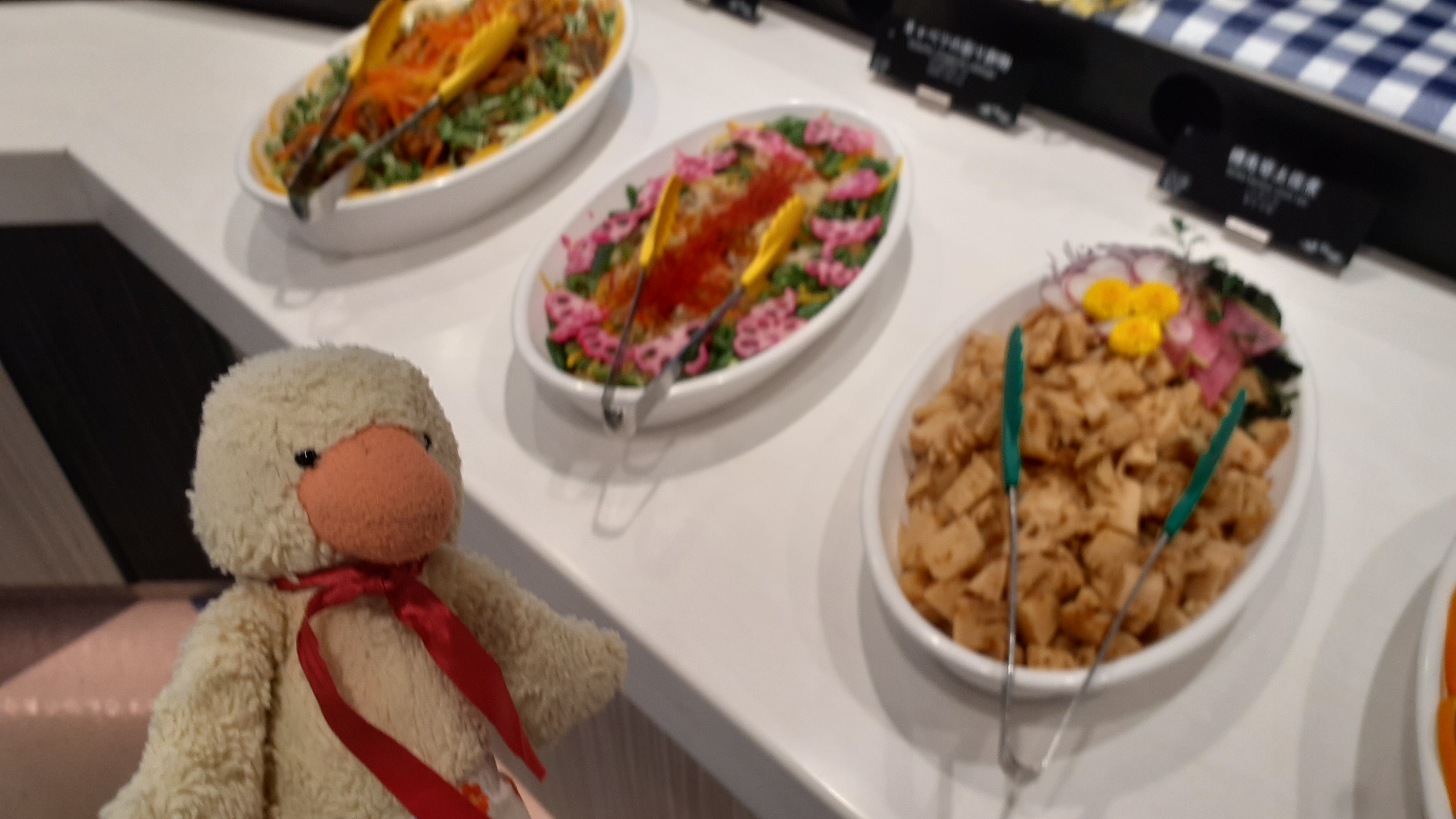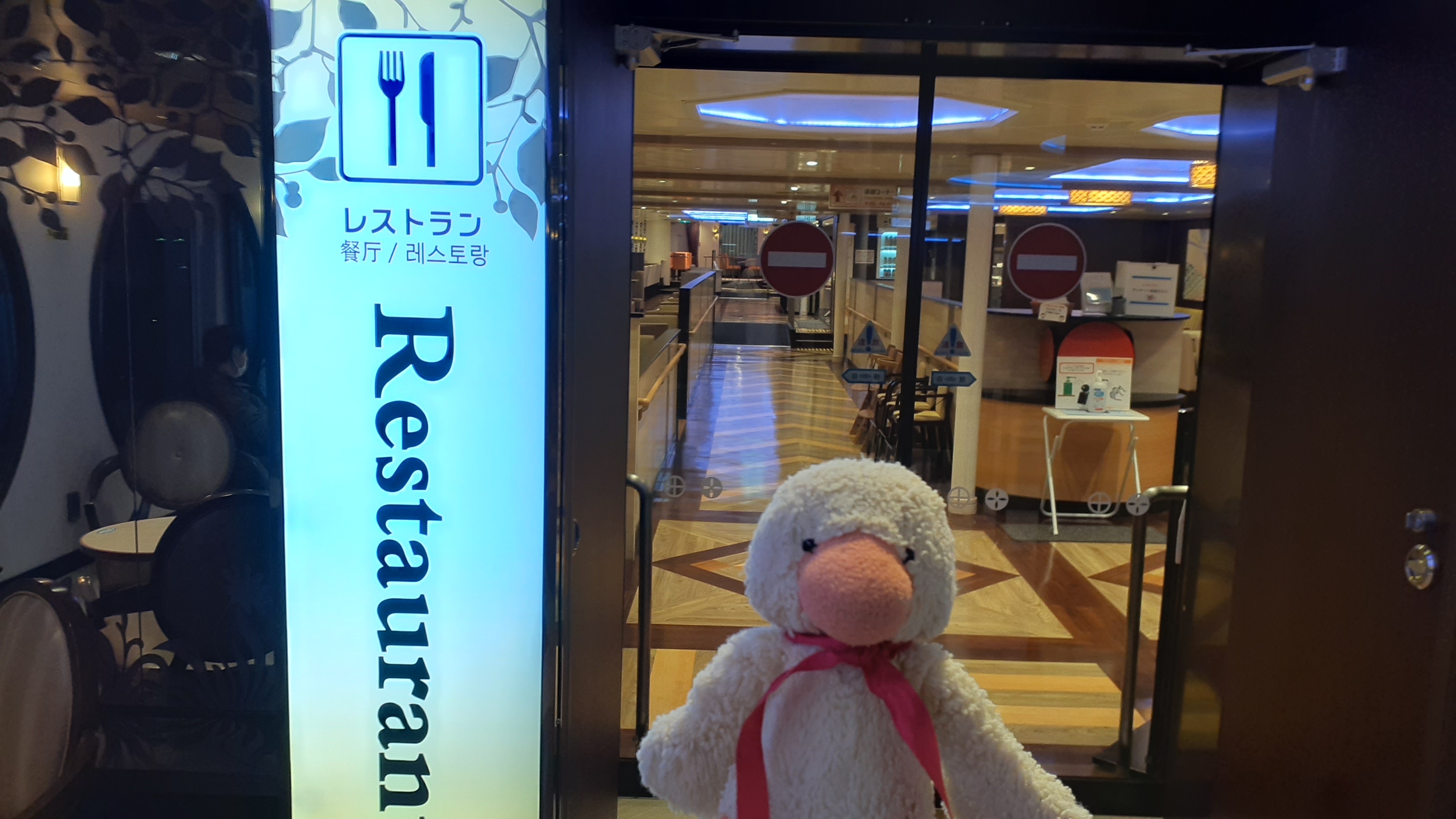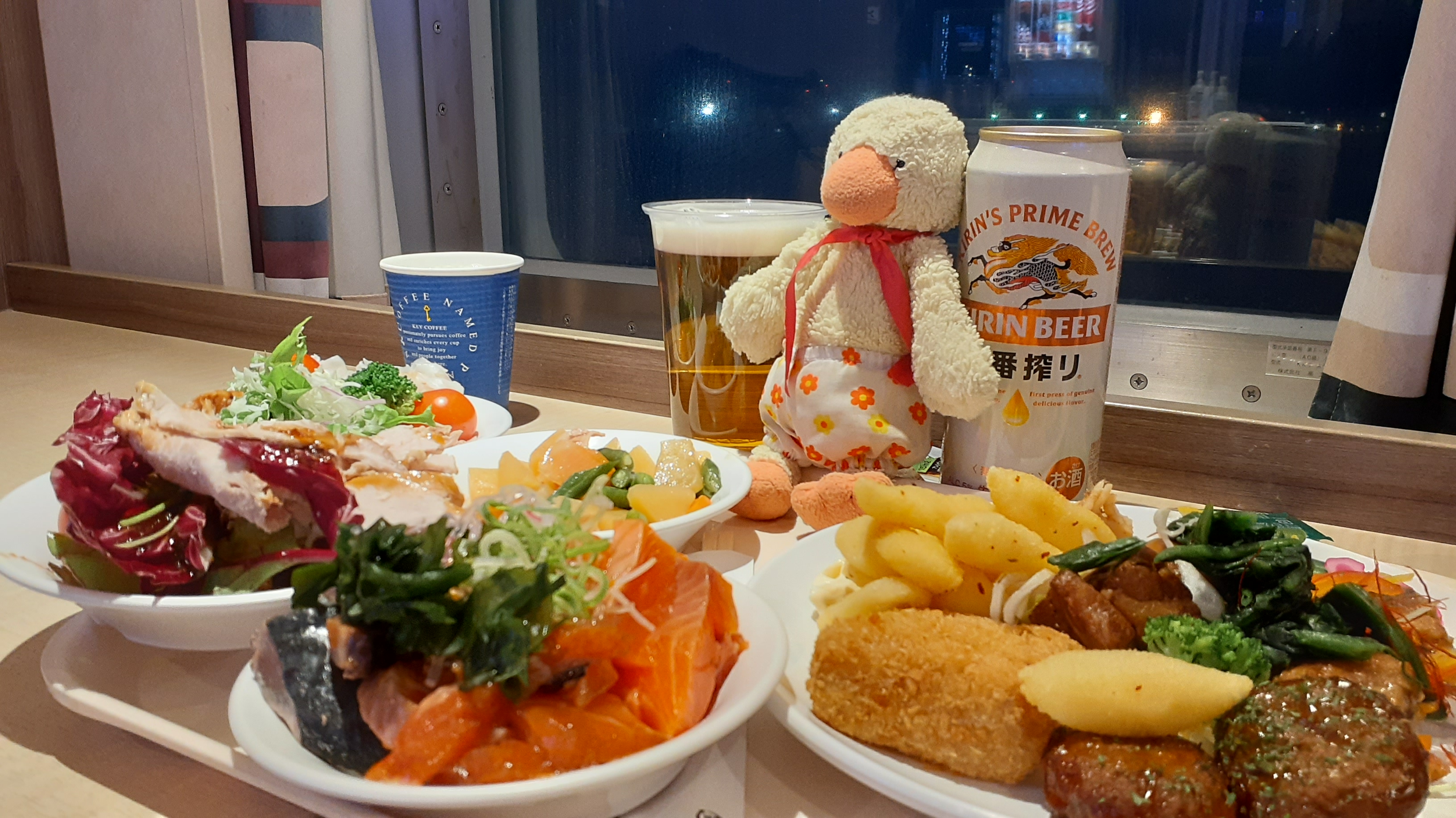 フェリーさんふらわあでの朝。土曜日なので、船内で旅サラダ。