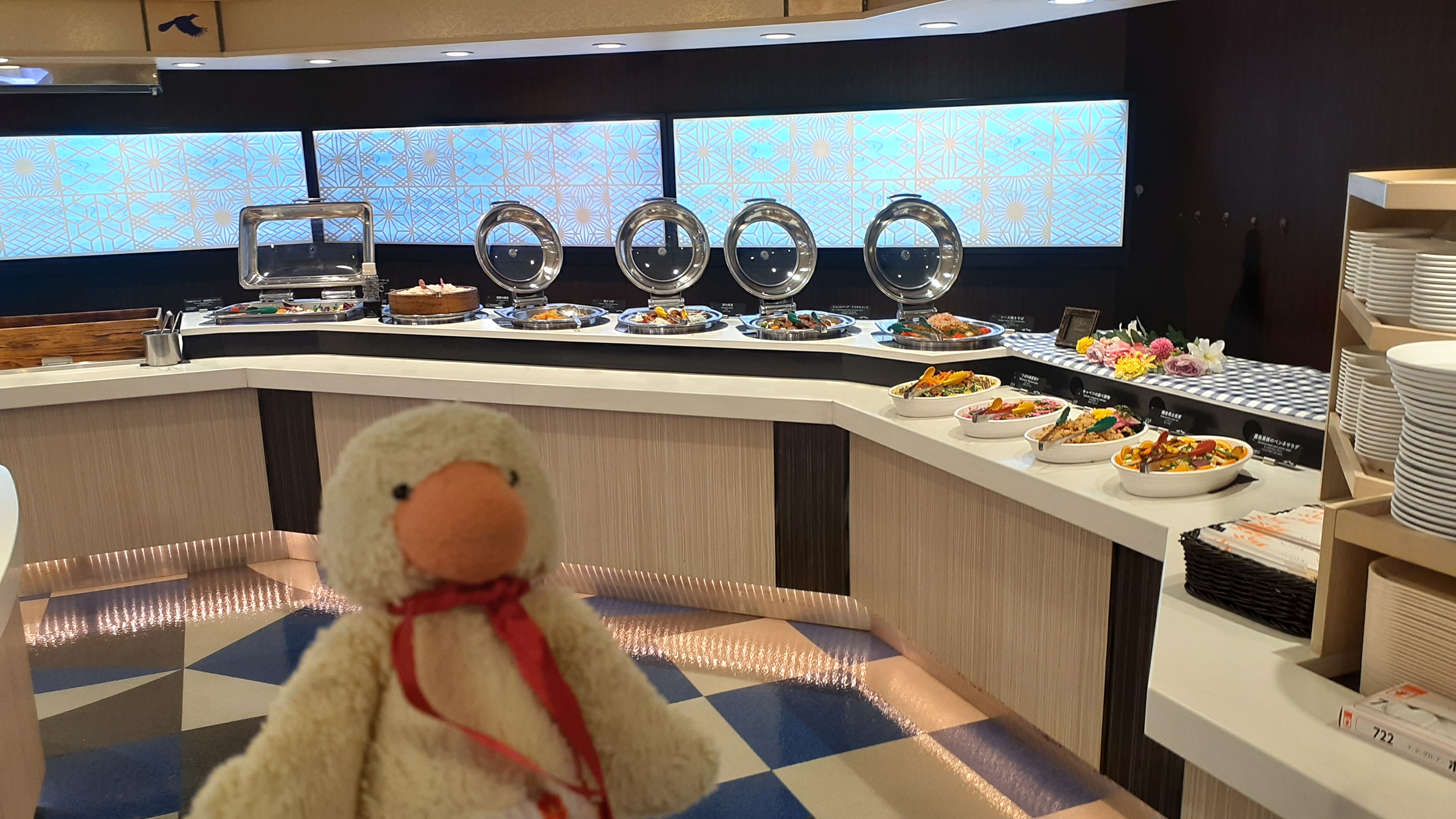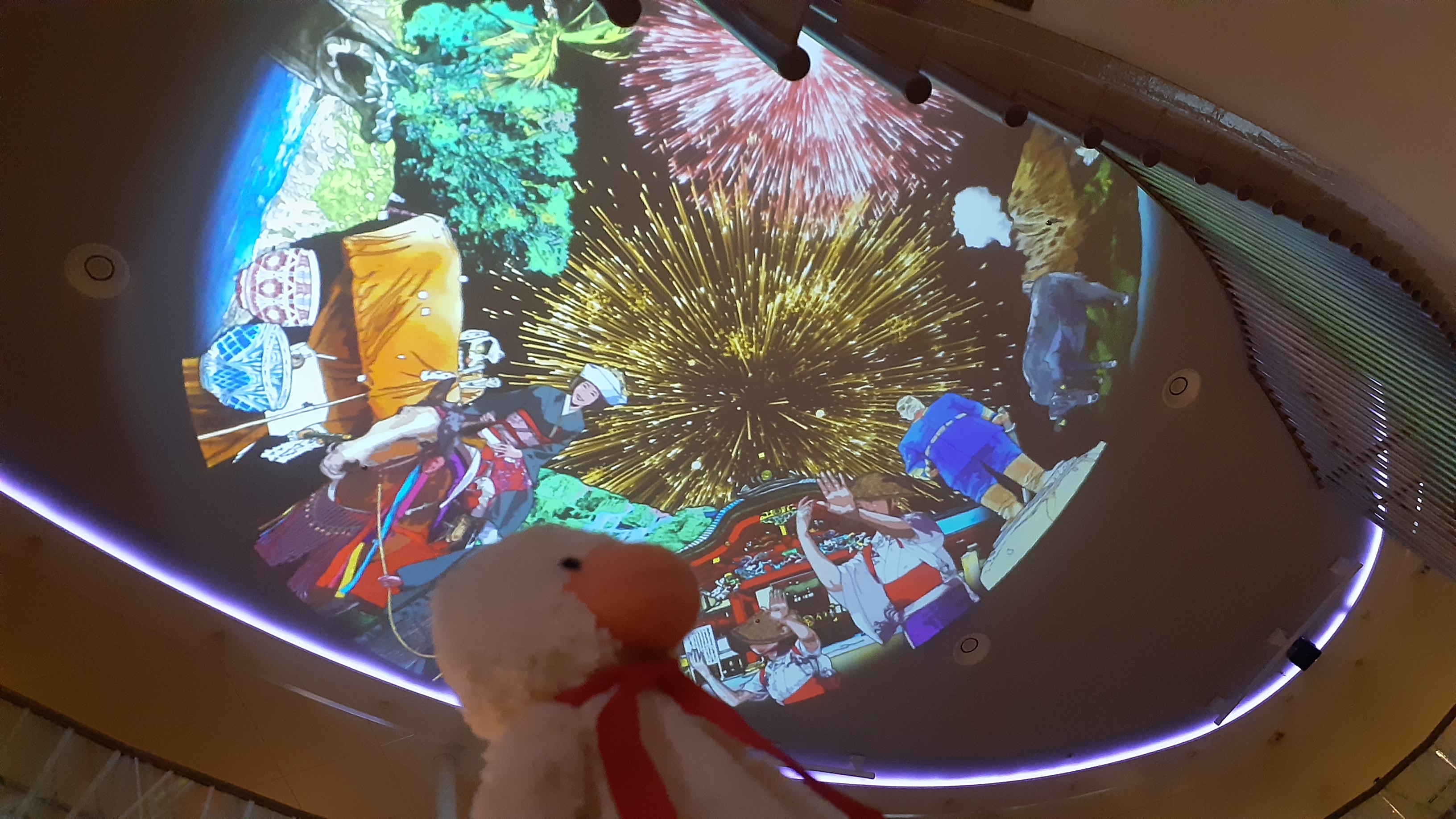 完食。ごちそうさまでした。(エントランスの吹き抜けでプロジェクションマッピングを見た)