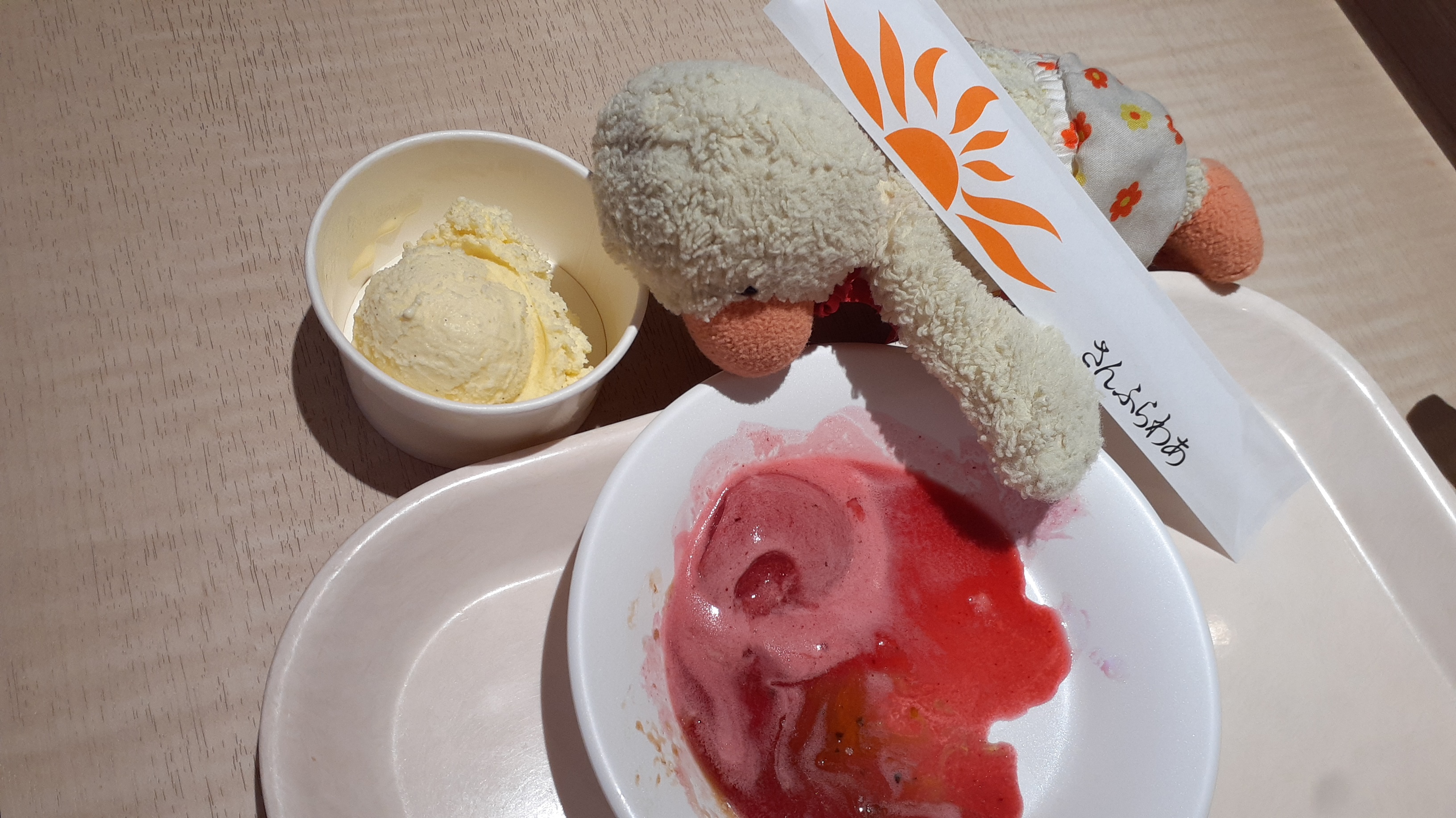 デザートのアイスも・・・(赤いのは吐血ではありません)