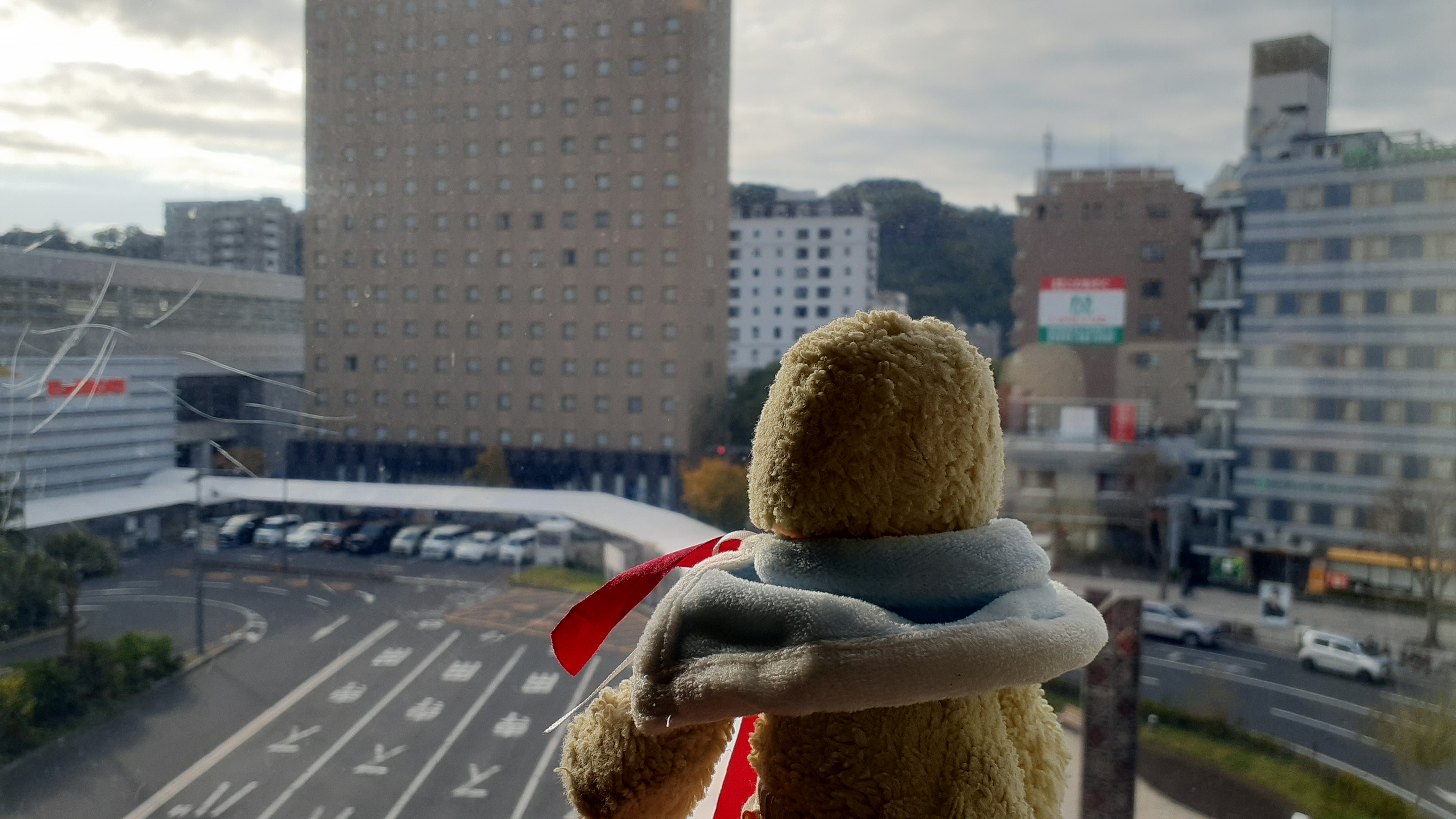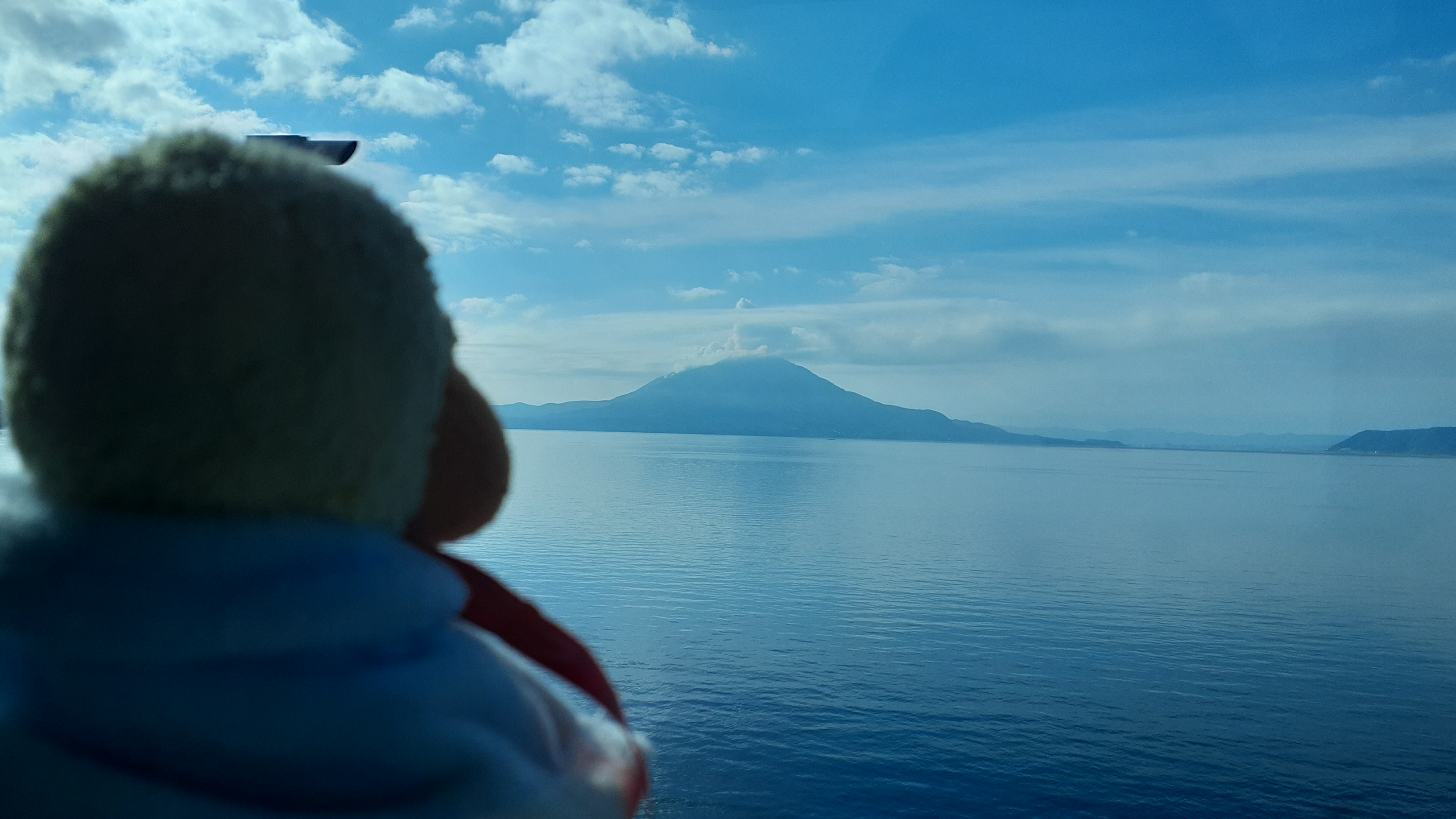 廊下に出ると、うっすらと鹿児島が見えてきました。