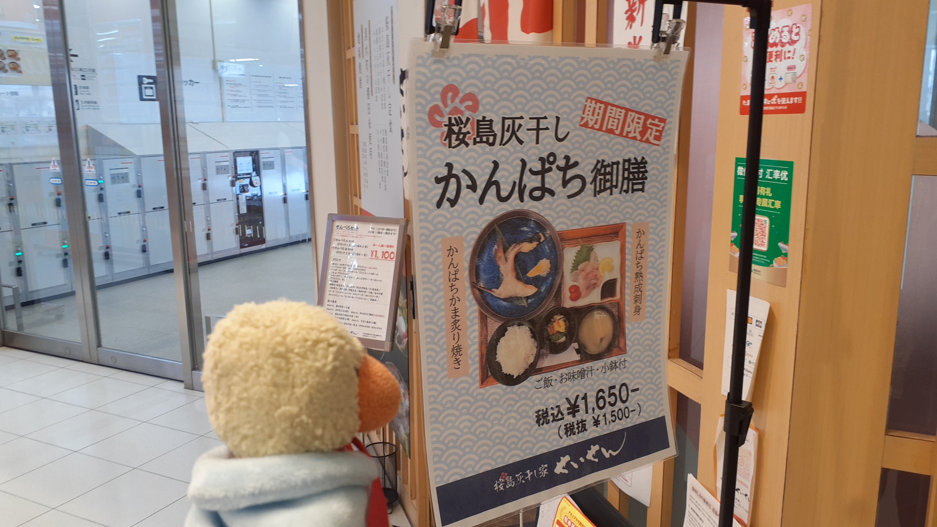 とりあえずタダでフェリーさんふらわあで鹿児島へ来たたけじろう。