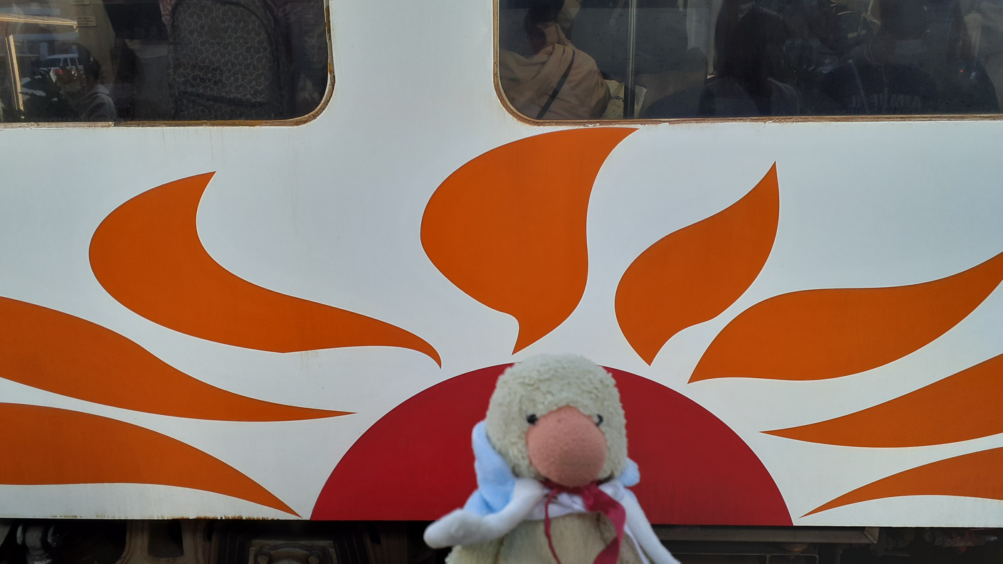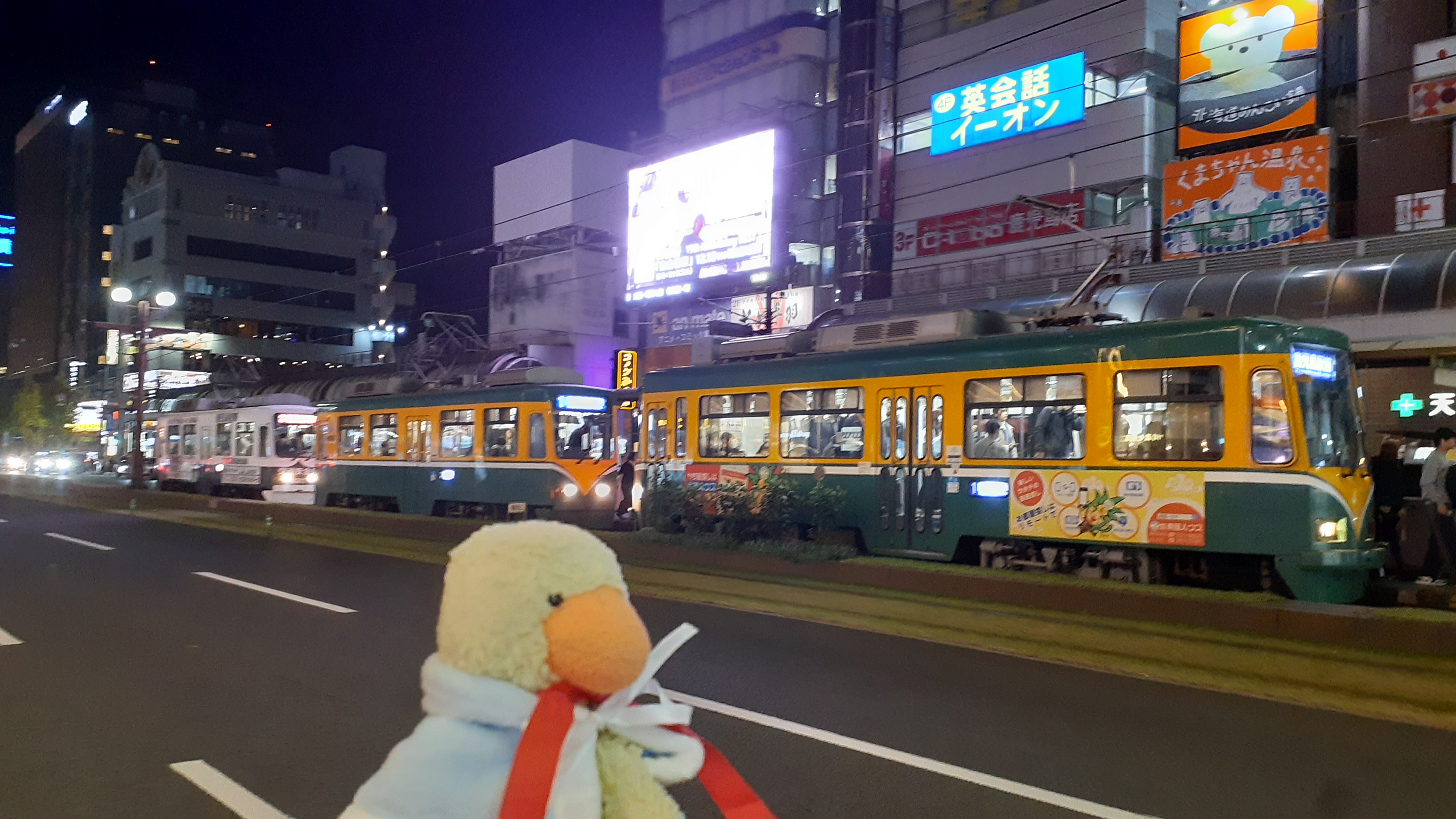 お団子おいしい。市電も団子状態。カボチャ・カボチャ・後ろは??