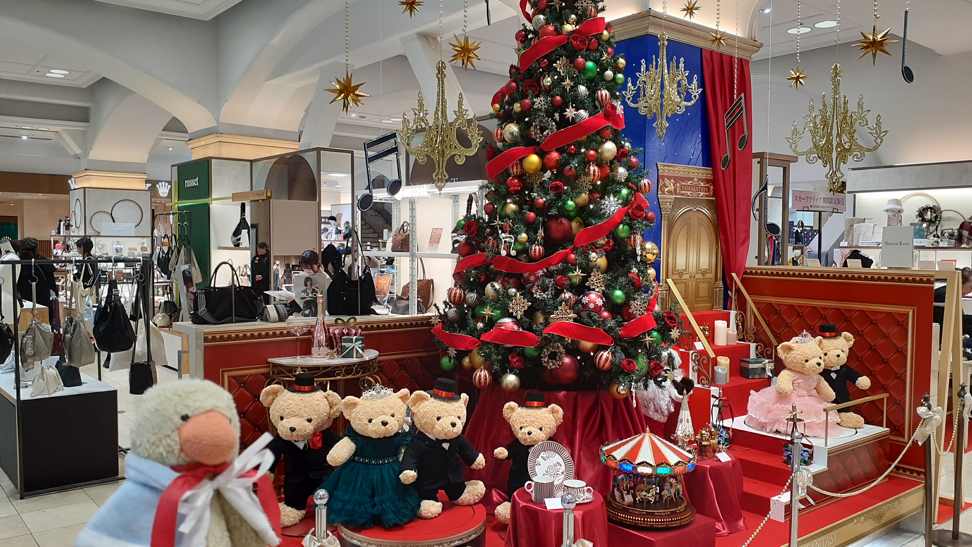 百貨店の装飾はツリーひとつとっても上品で華やかやのぉ。