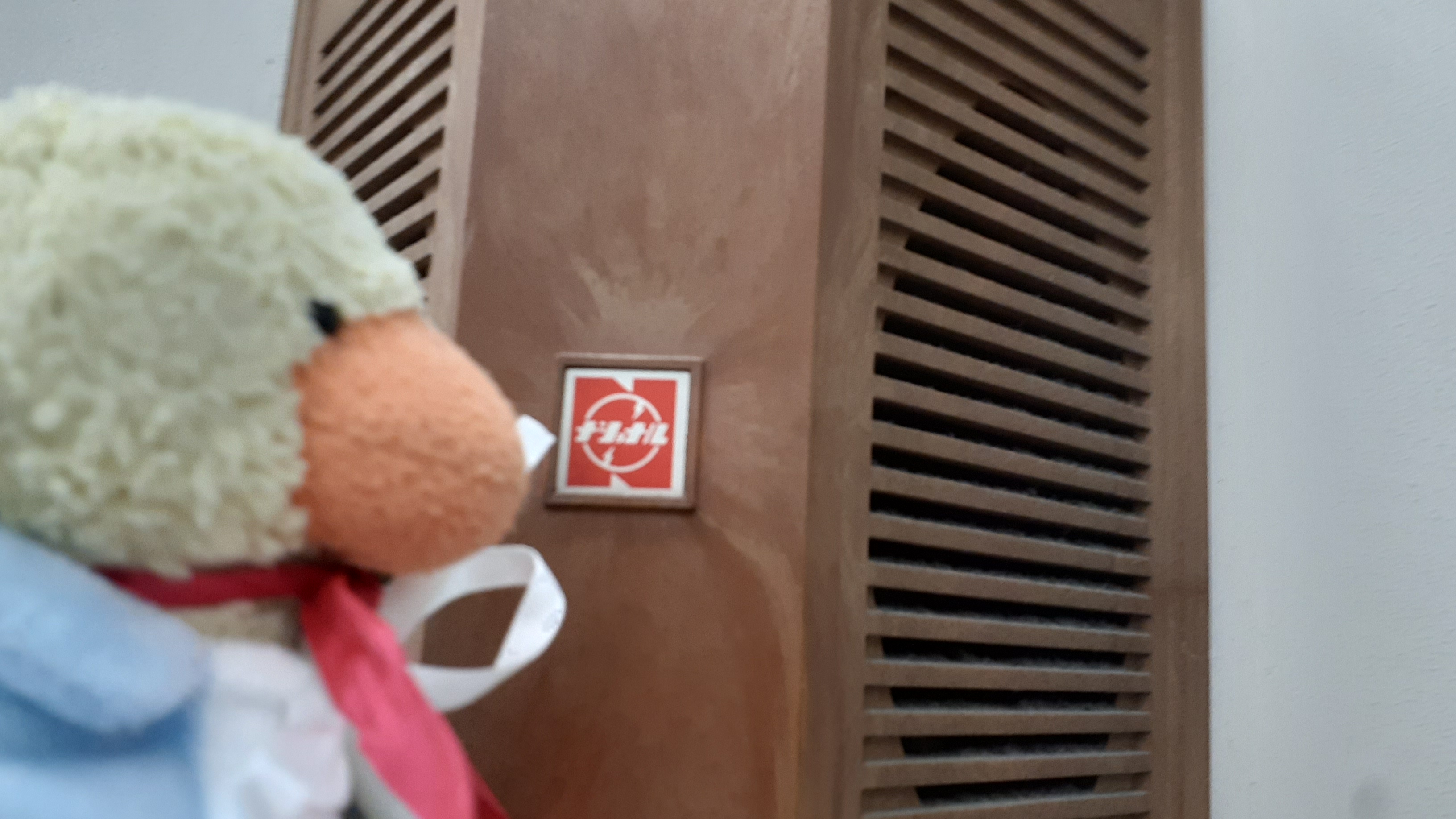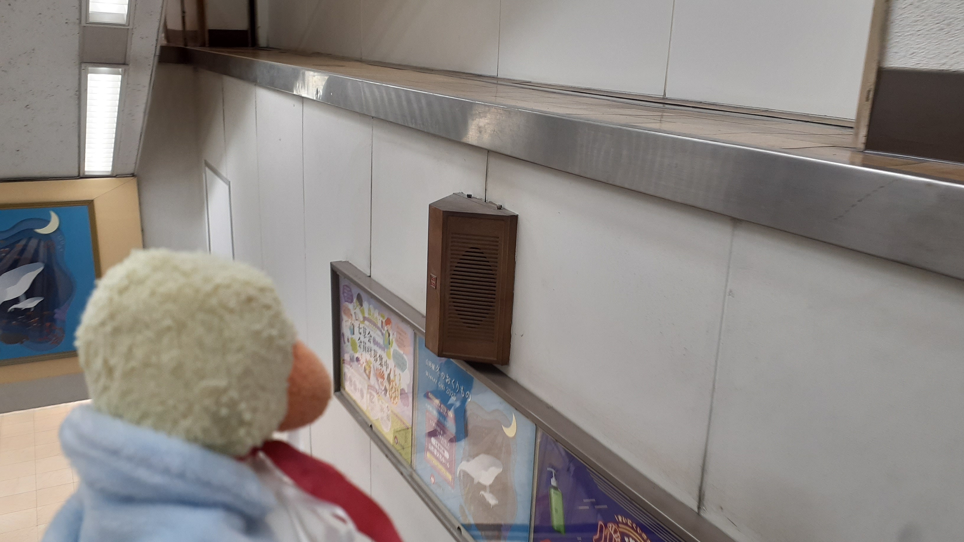 エスカレーターに乗っていると、壁にはレトロなスピーカー・・・