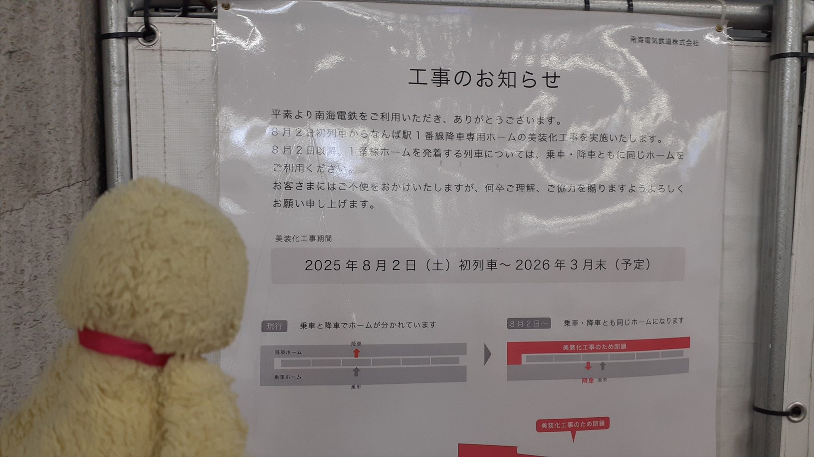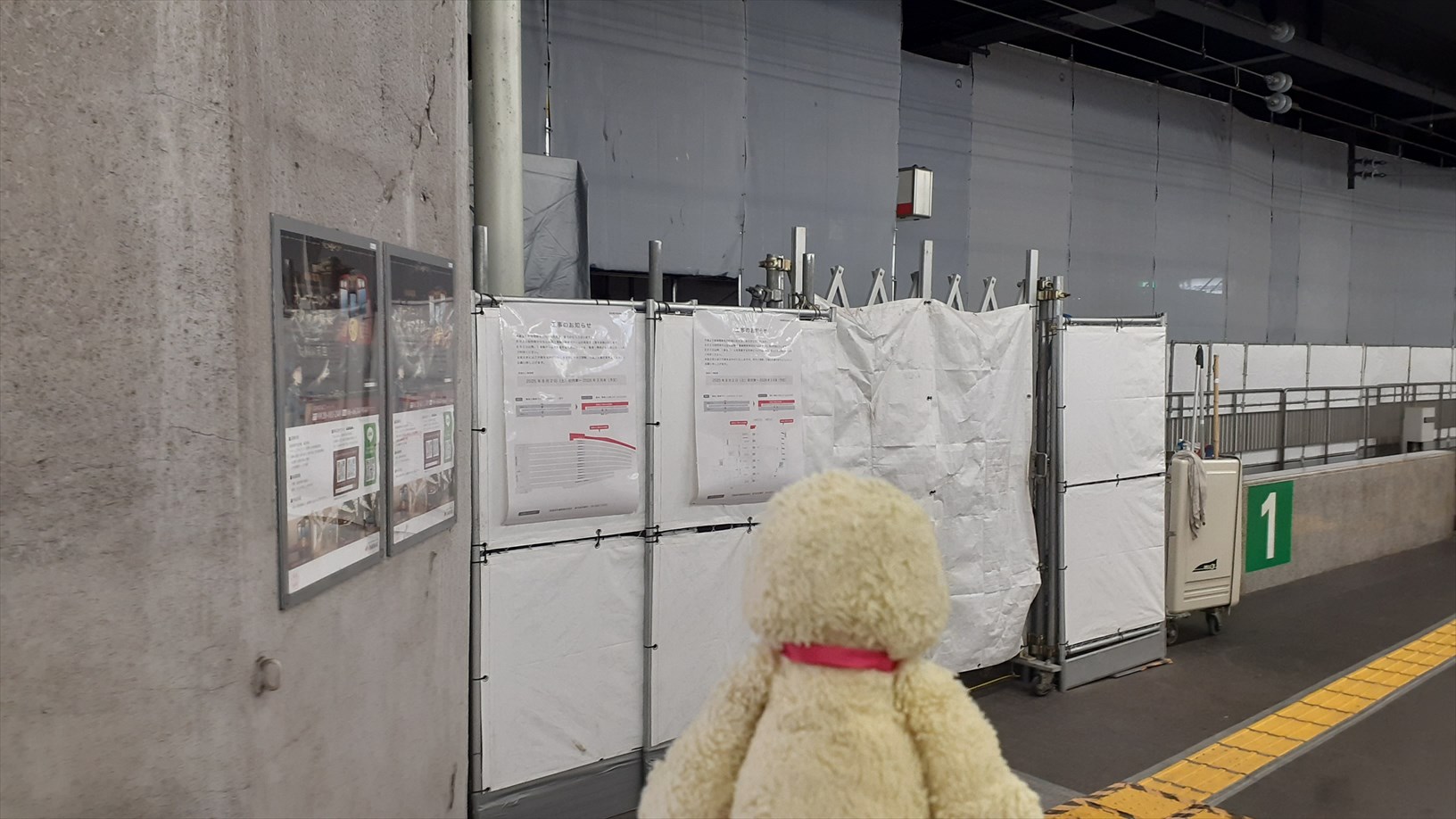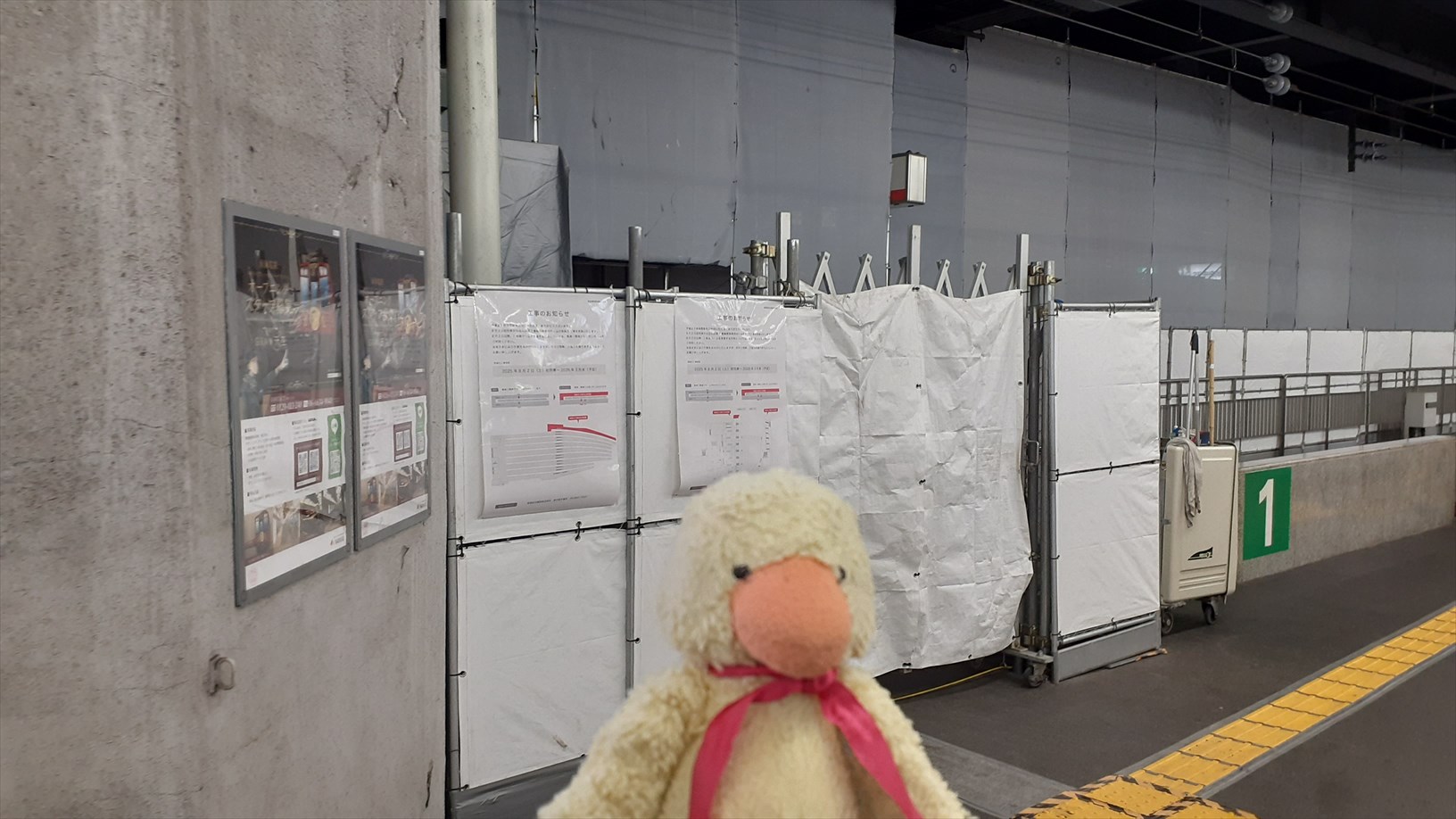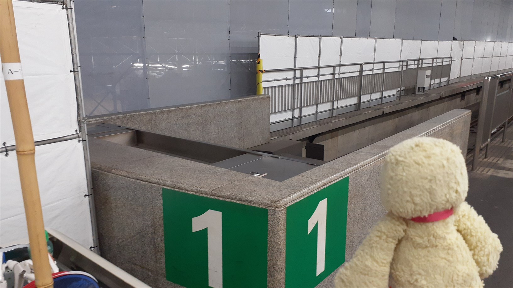 1番線の降車ホームは現在工事中。