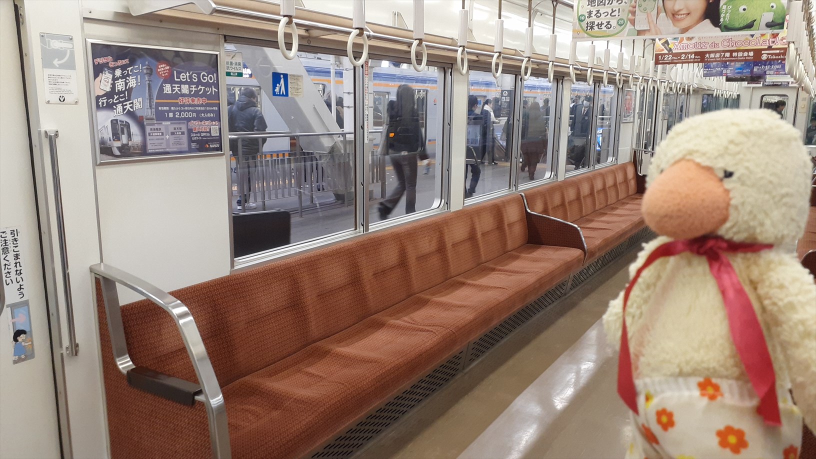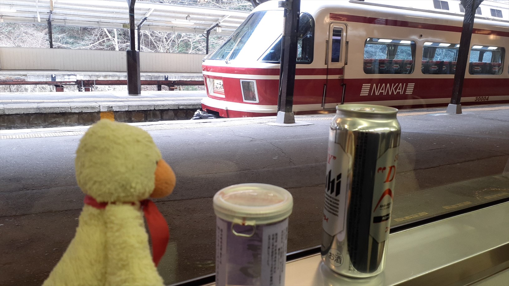 発車するや、、すぐに熟睡Zzz(南海の古い車両の座席は寝られる癖が染みついている。。)