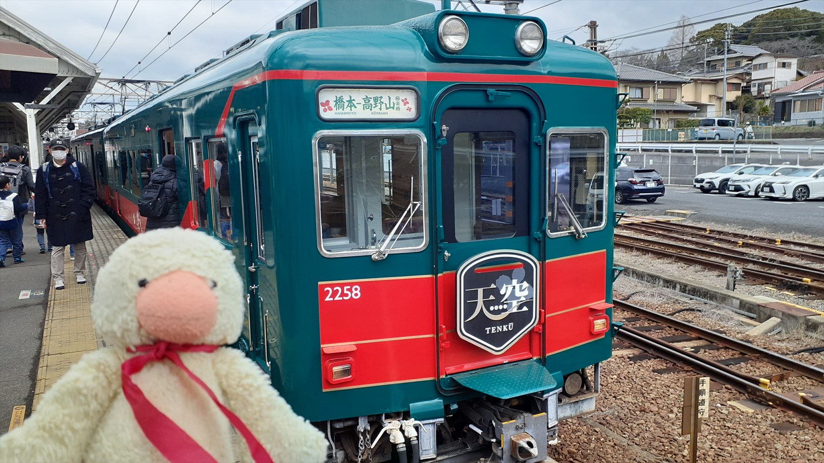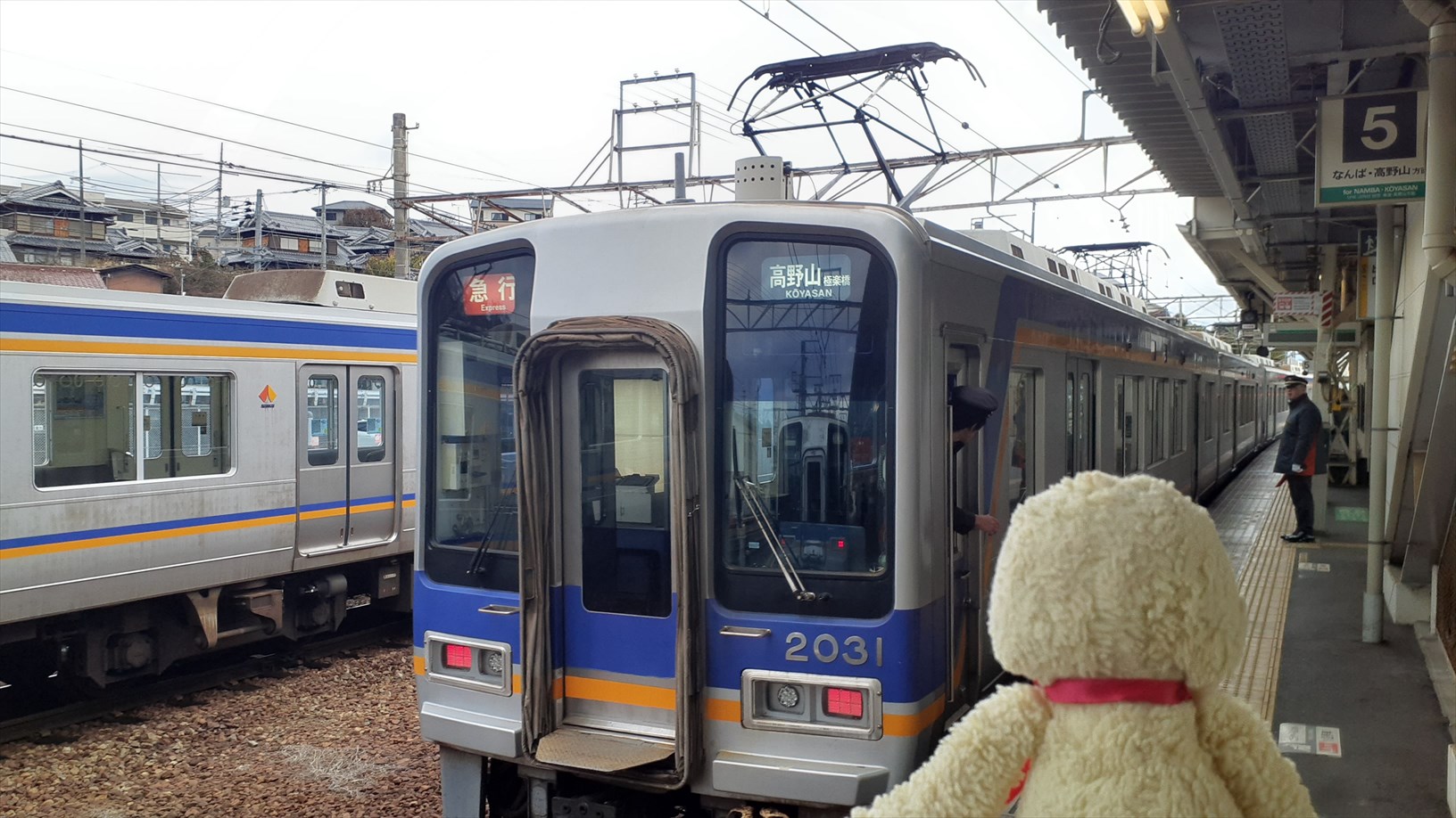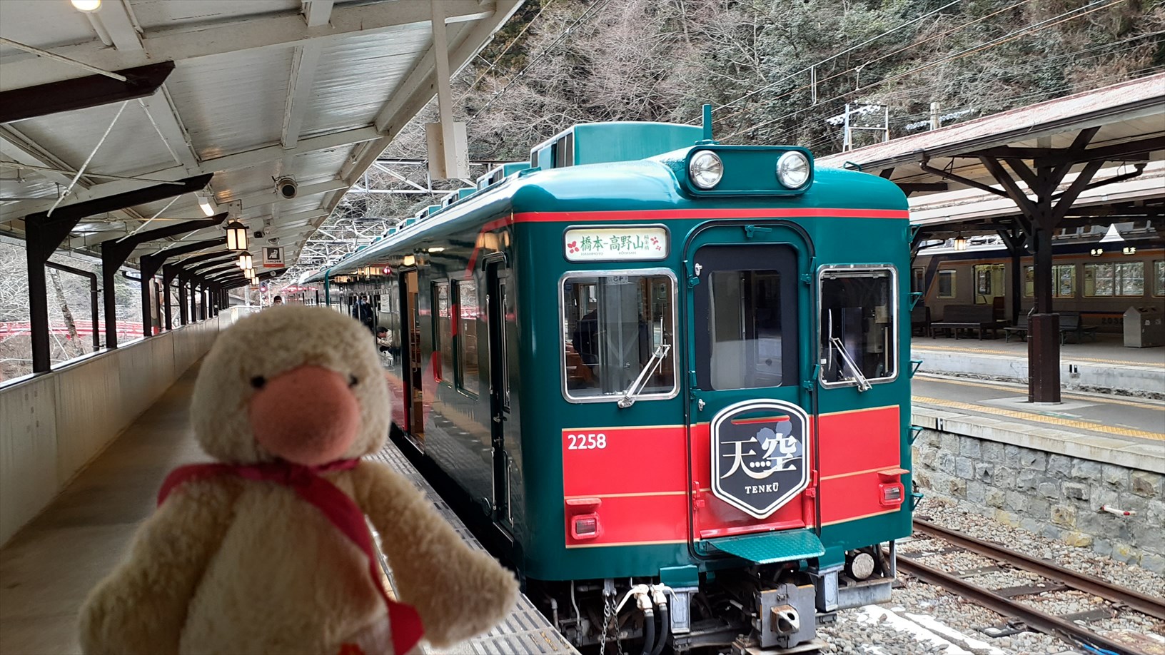乗るのはこっち。急行 高野山極楽橋ゆき。2000系ズームカー!2扉の車両。