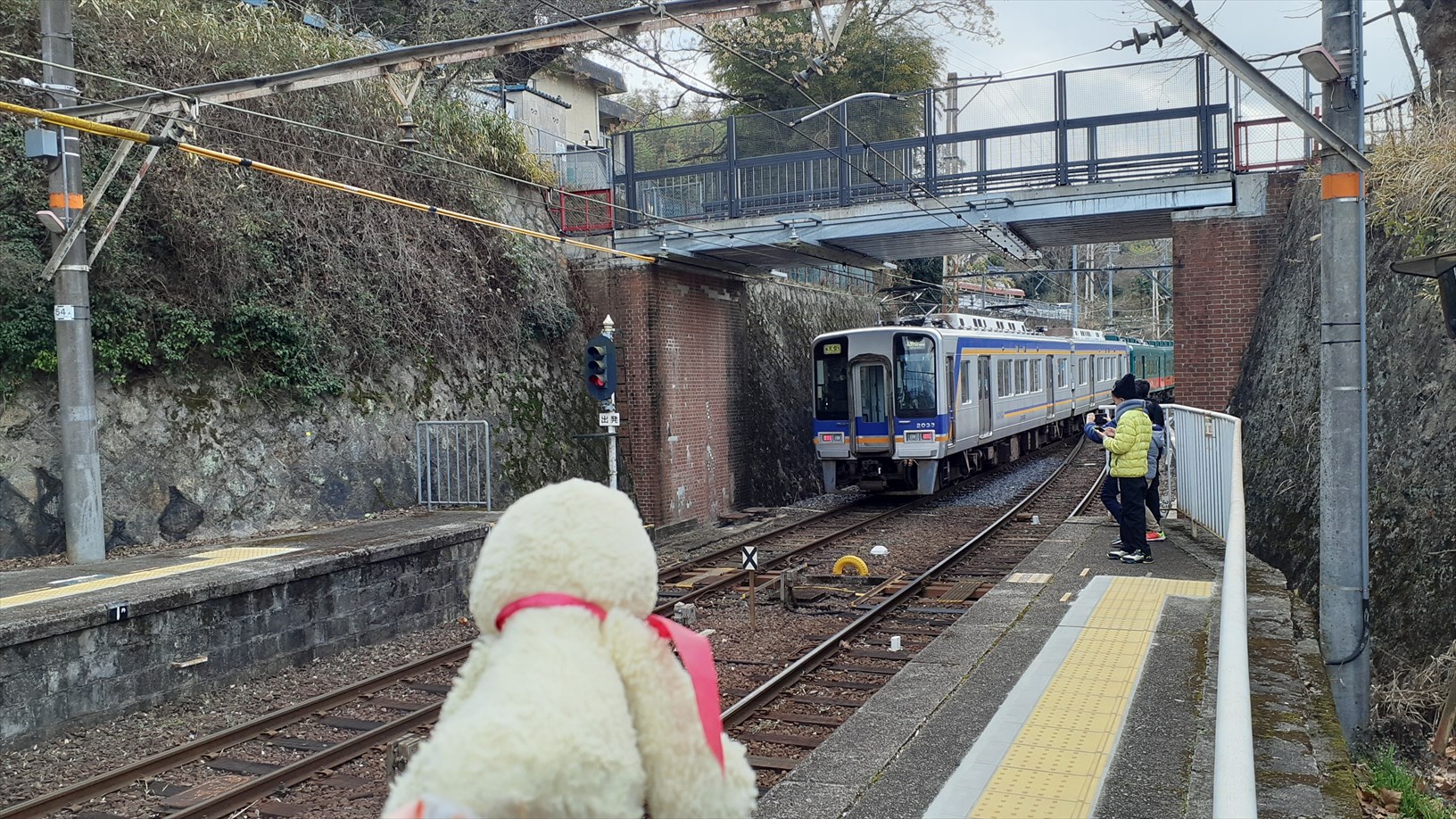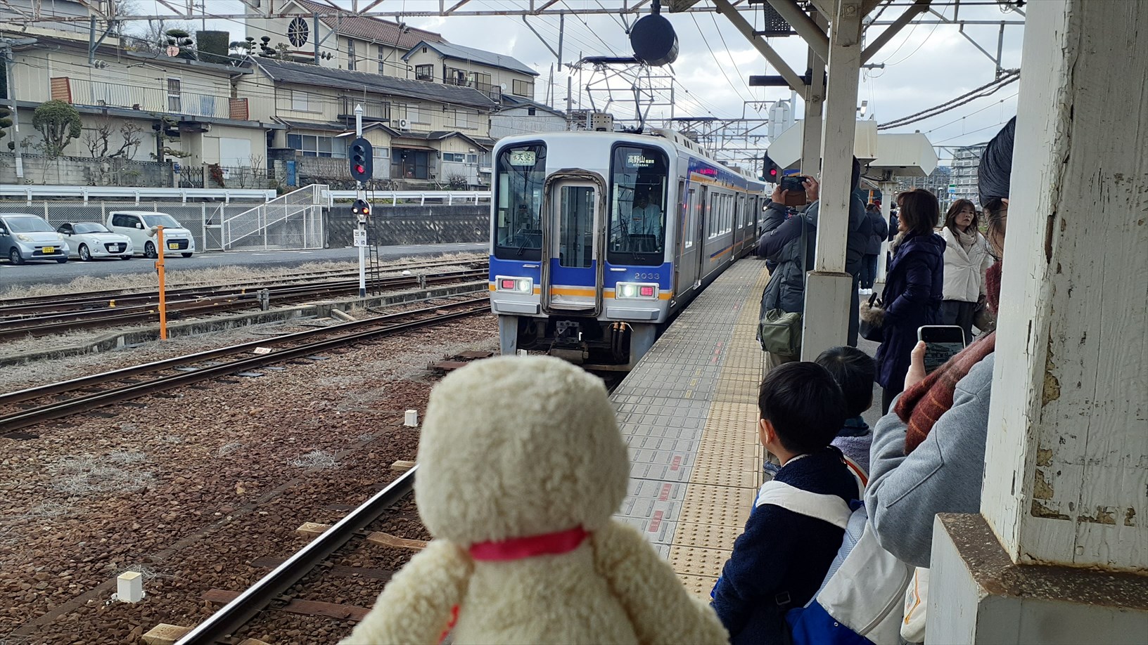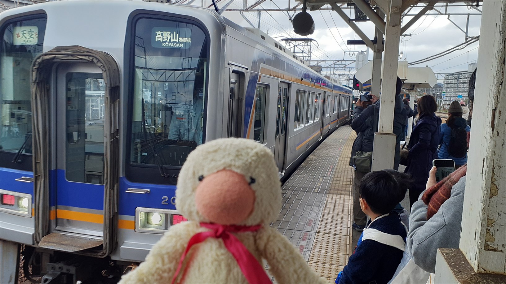 先ほど極楽橋駅で停車していた特急こうや号が通過。同行していたキッズ達が乗っているとやらで、残った皆さんでお見送り。