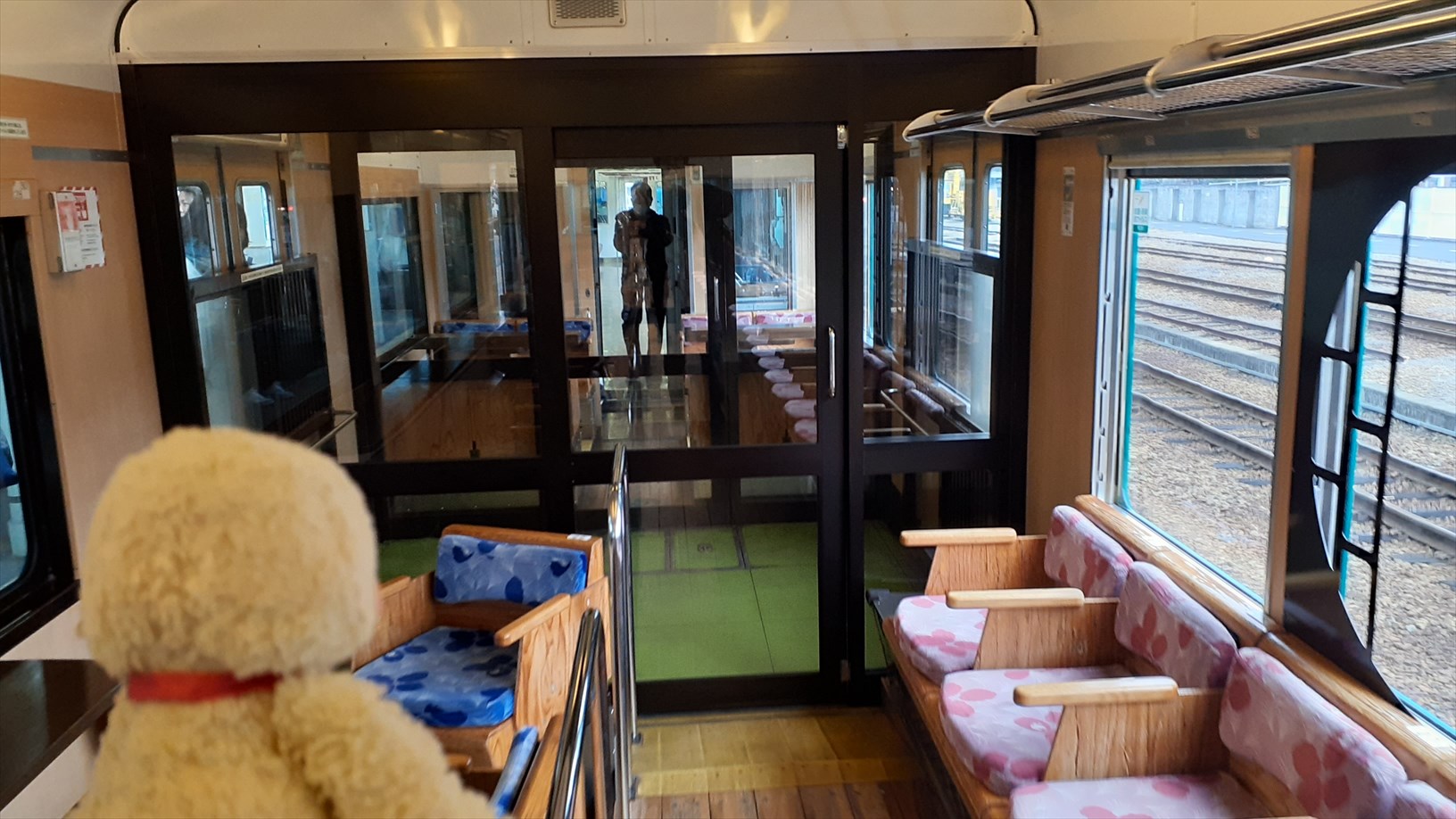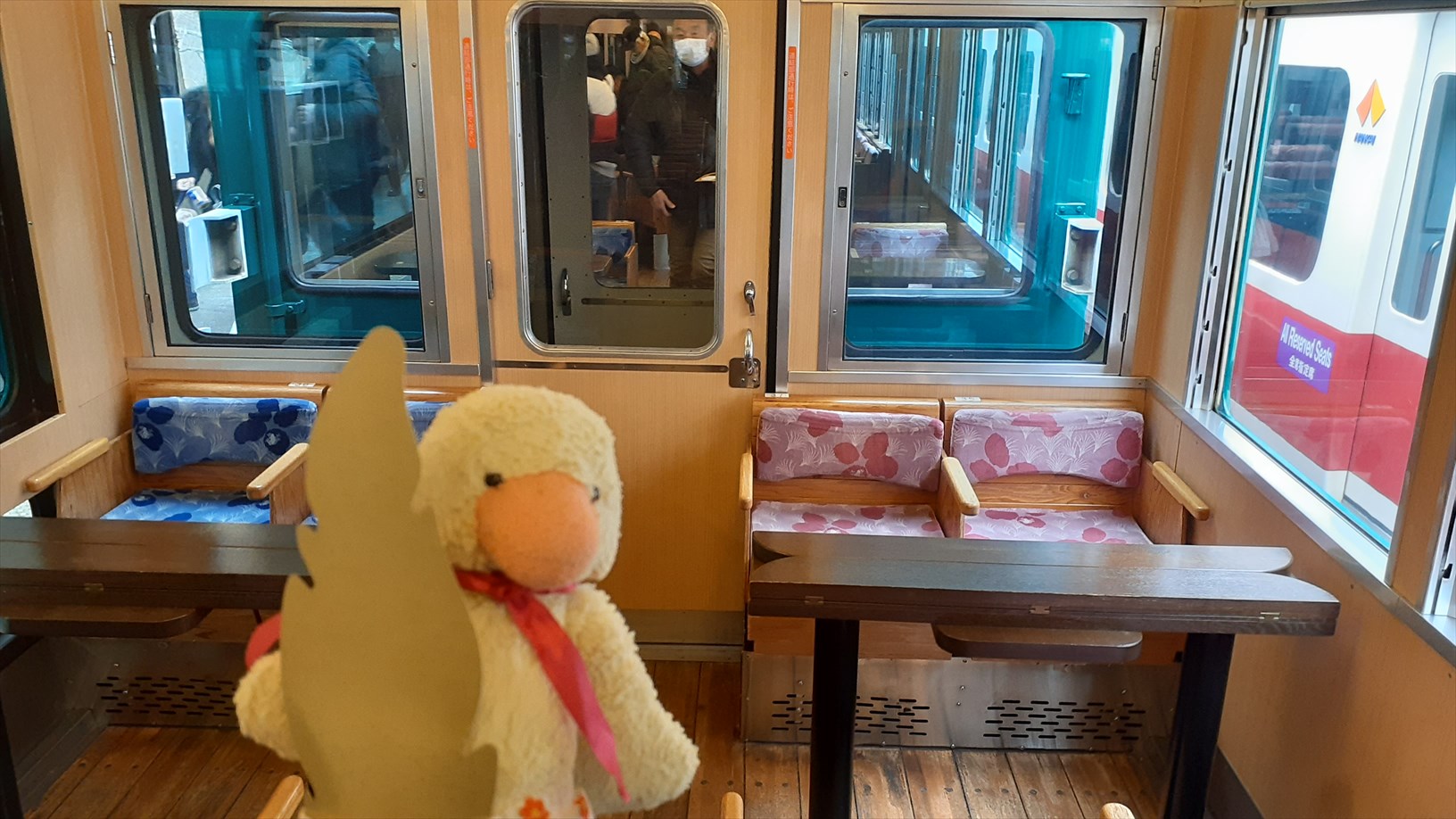 そして、その展望デッキ(という名のドア前スペース)と、運転席の間は・・・個室っぽい4人ボックス席が2区画。