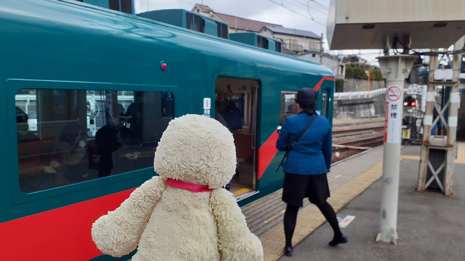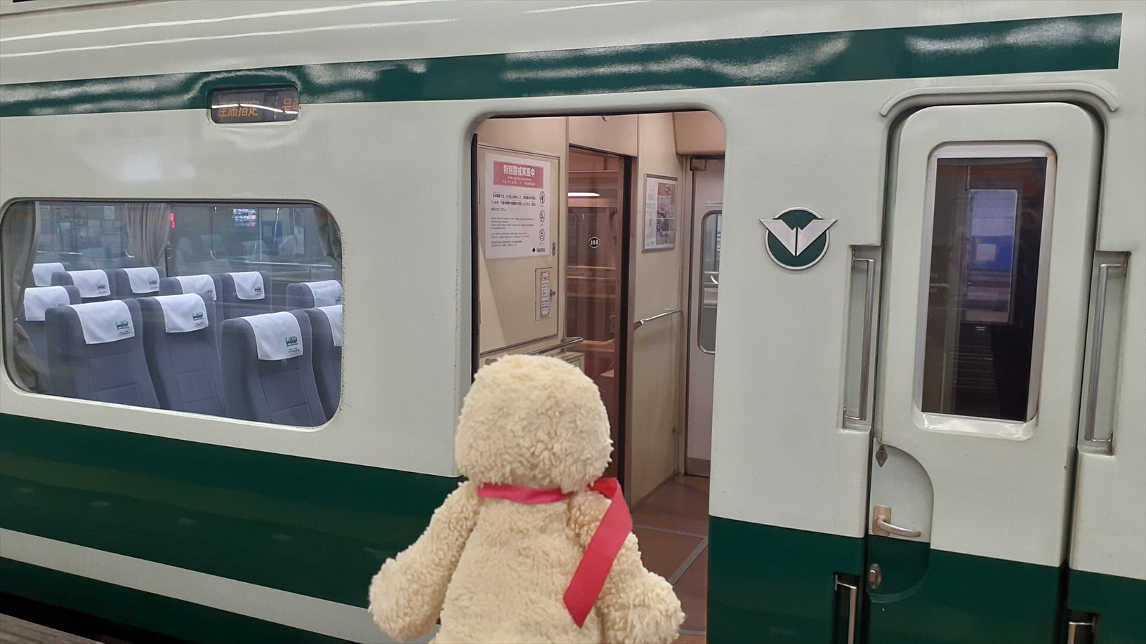 お部屋の様子は伺えませんでしたが、乗る列車が到着したのでホームに戻ります。