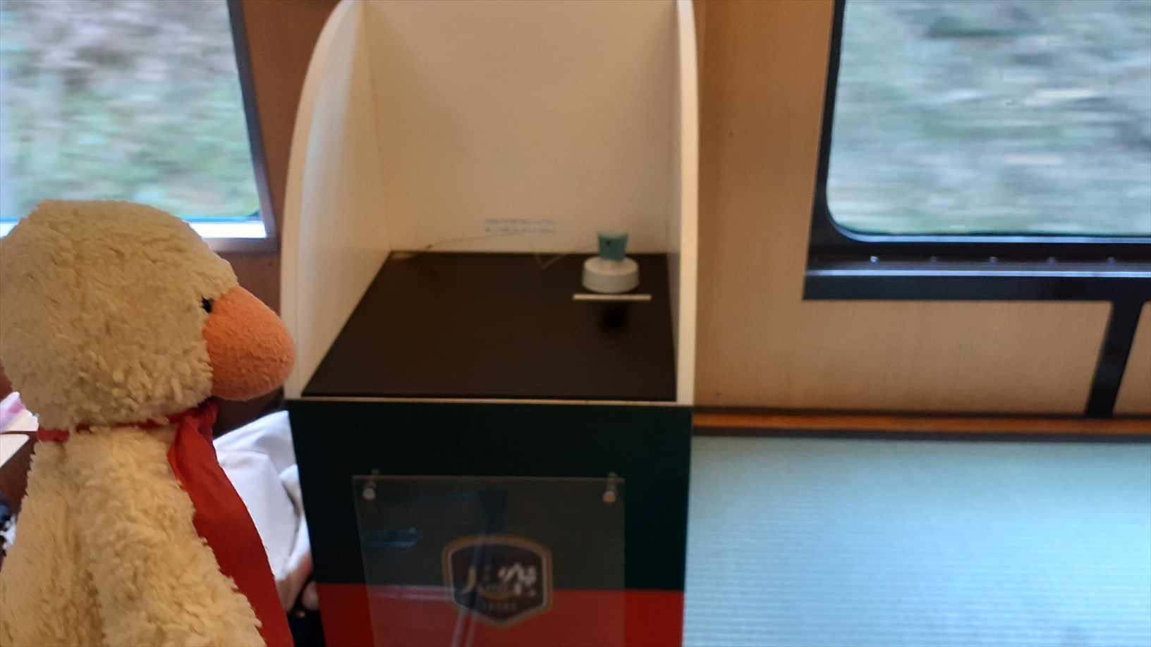 お席の隣には、記念乗車証のスタンプがあります。(畳の小上がりに載っている)