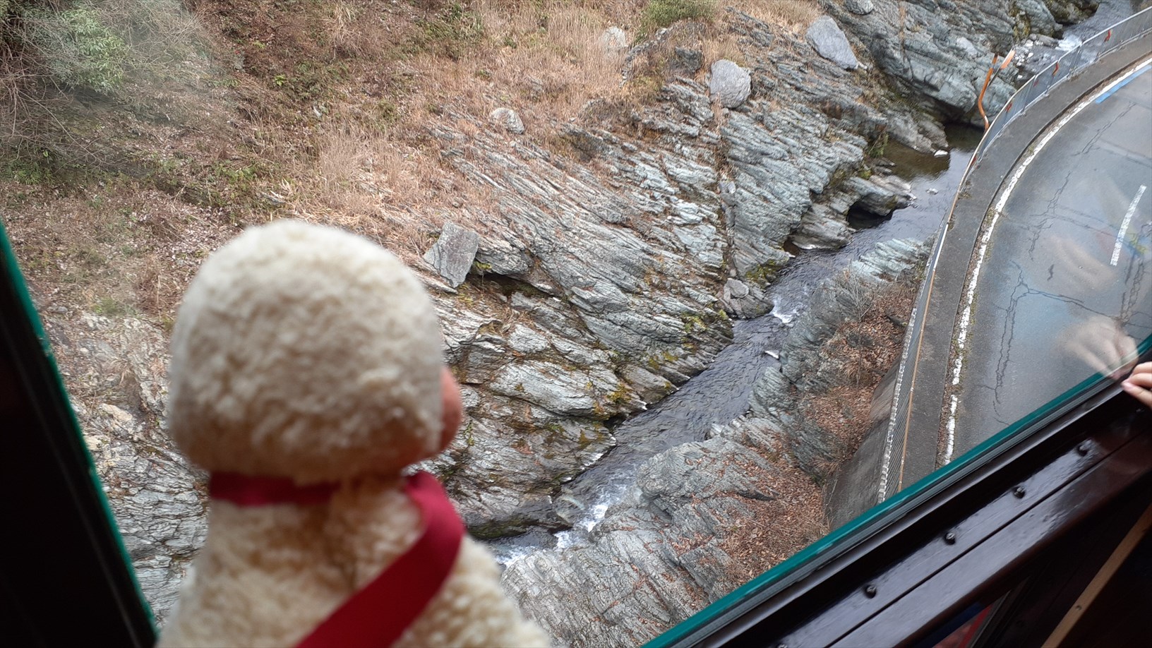 車輪と線路が擦れるフランジ音を鳴らして急カーブをウネウネと左へ右へ進んで行くと・・・。