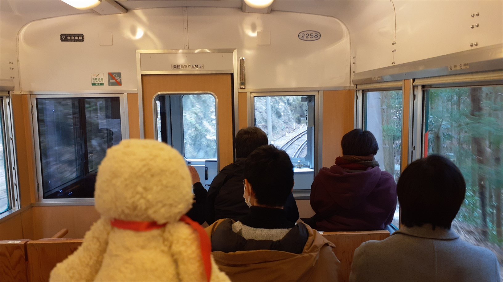 帰りは現在の塗装で、1992年に増備された少し新しい中間車に乗ってみましょう。