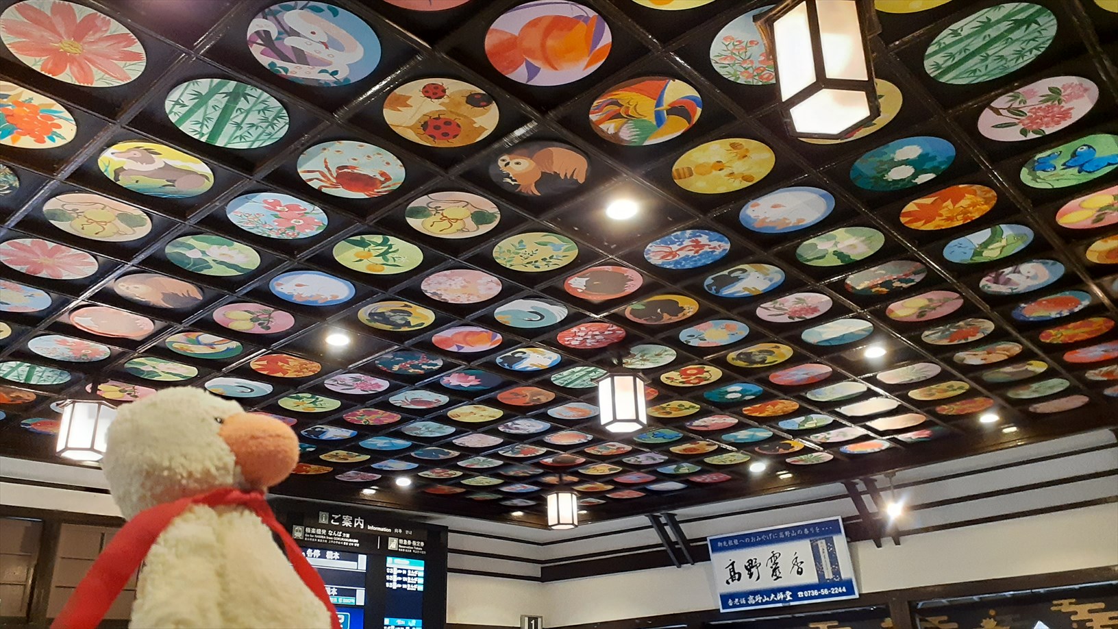 極楽橋駅の天井は、なんとも賑やか。(どういうチョイスなのかしら)