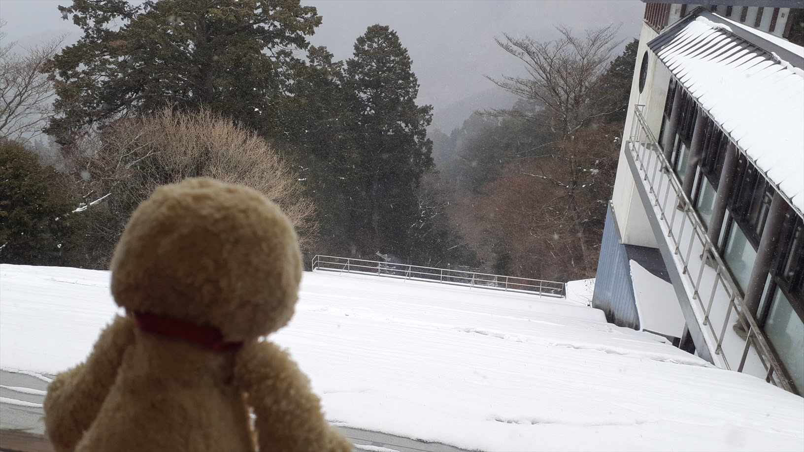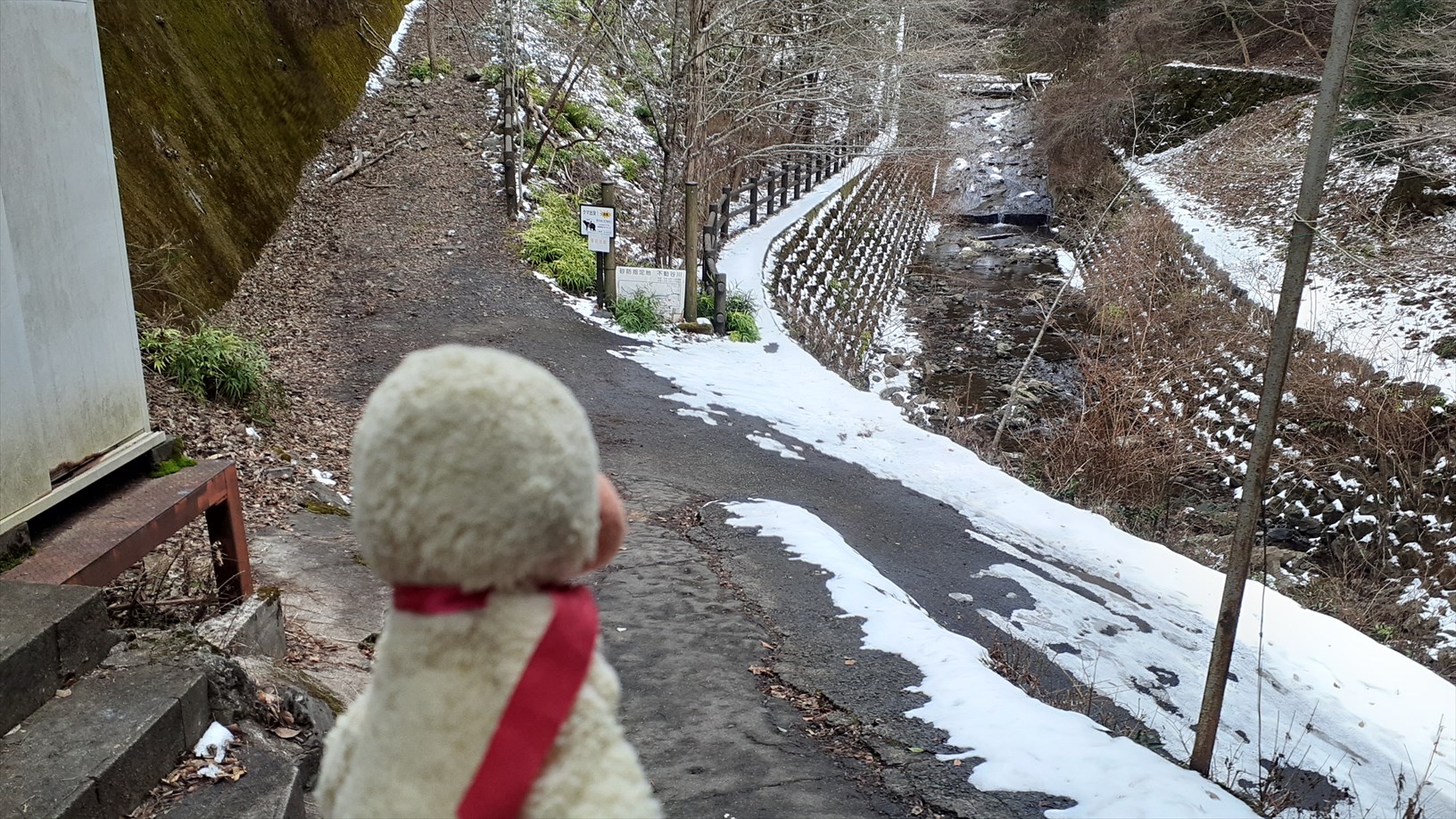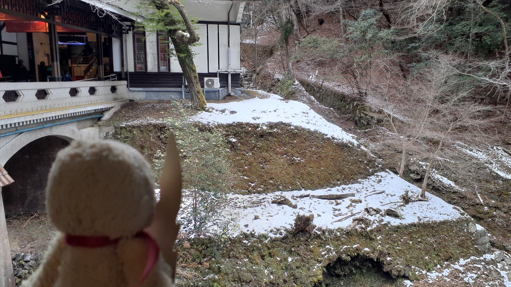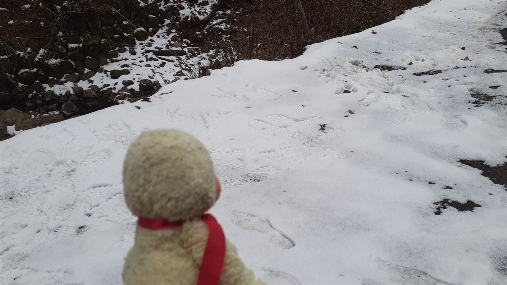 ちょっとだけ雪がチラホラ積もってるのぉ。