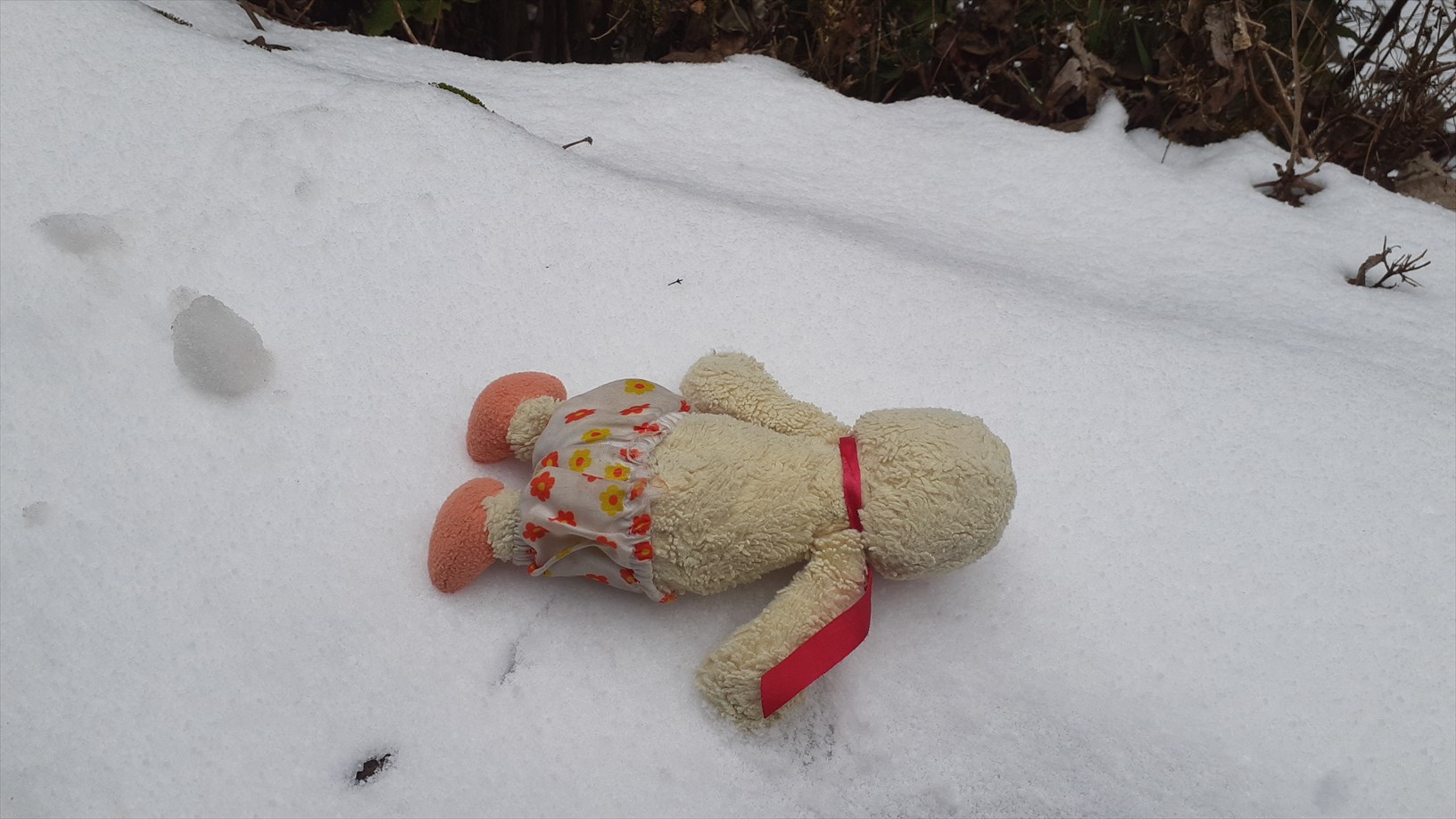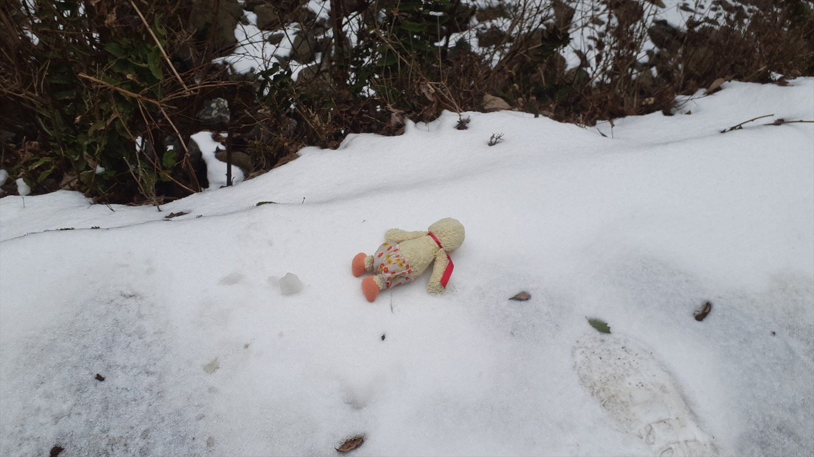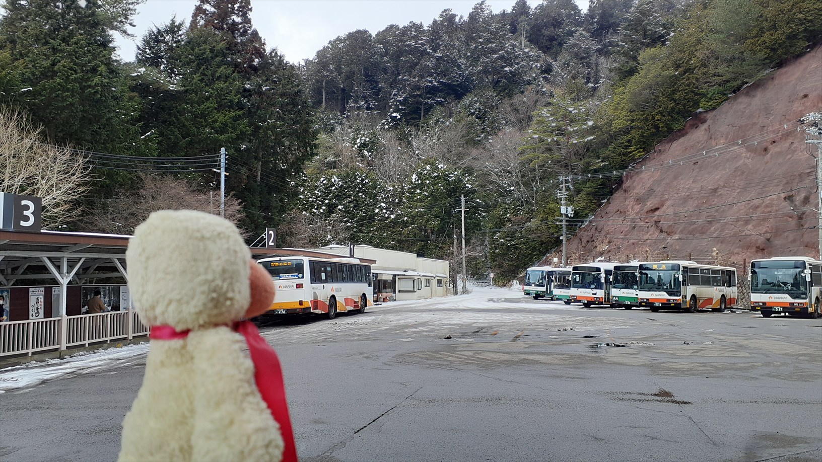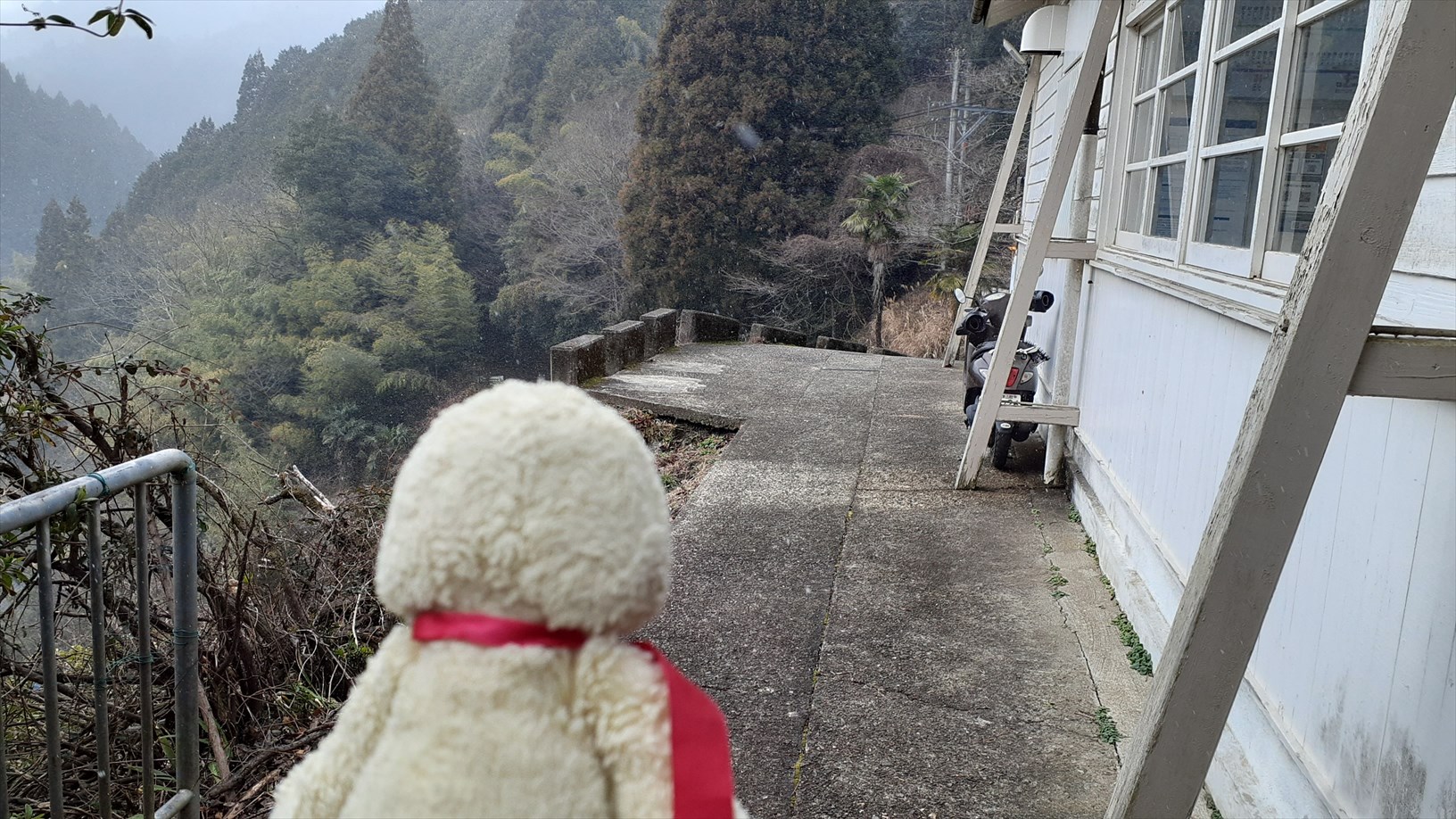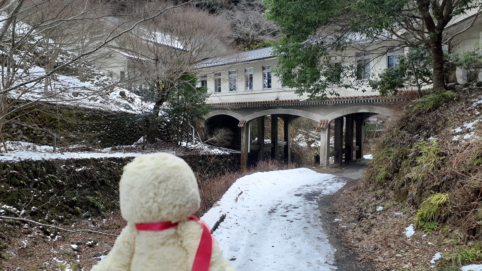 ちょっとだけ雪がチラホラ積もってるのぉ。