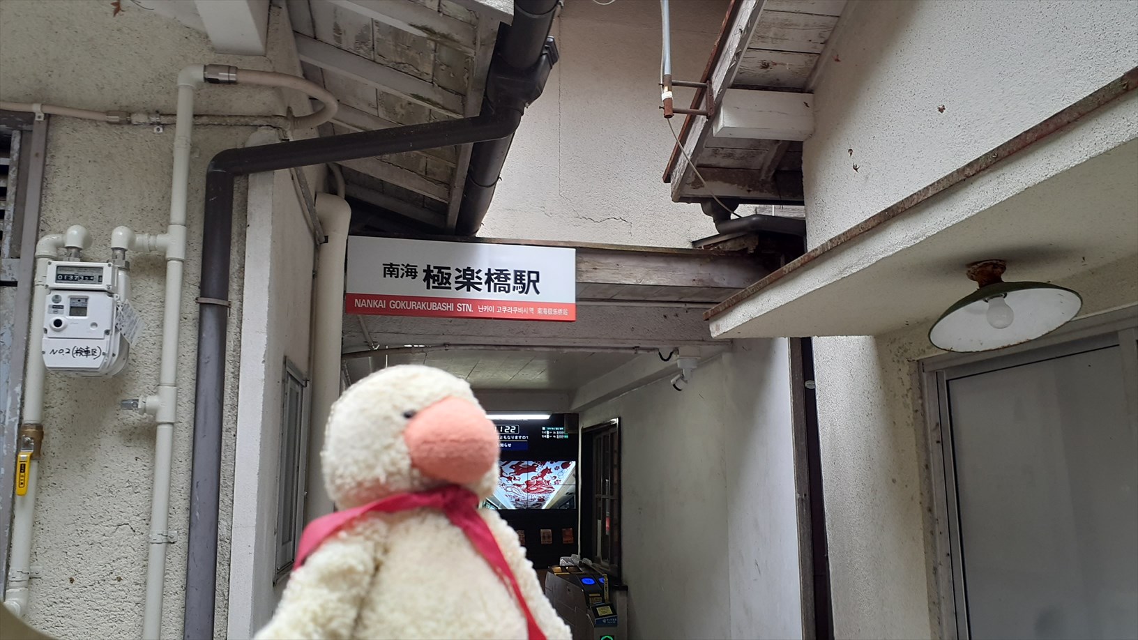 えーーーっと。。(極楽橋駅は終着駅ではあるものの、殆どの人がケーブルカーに乗り換えるので、改札は最小限のサイズ)