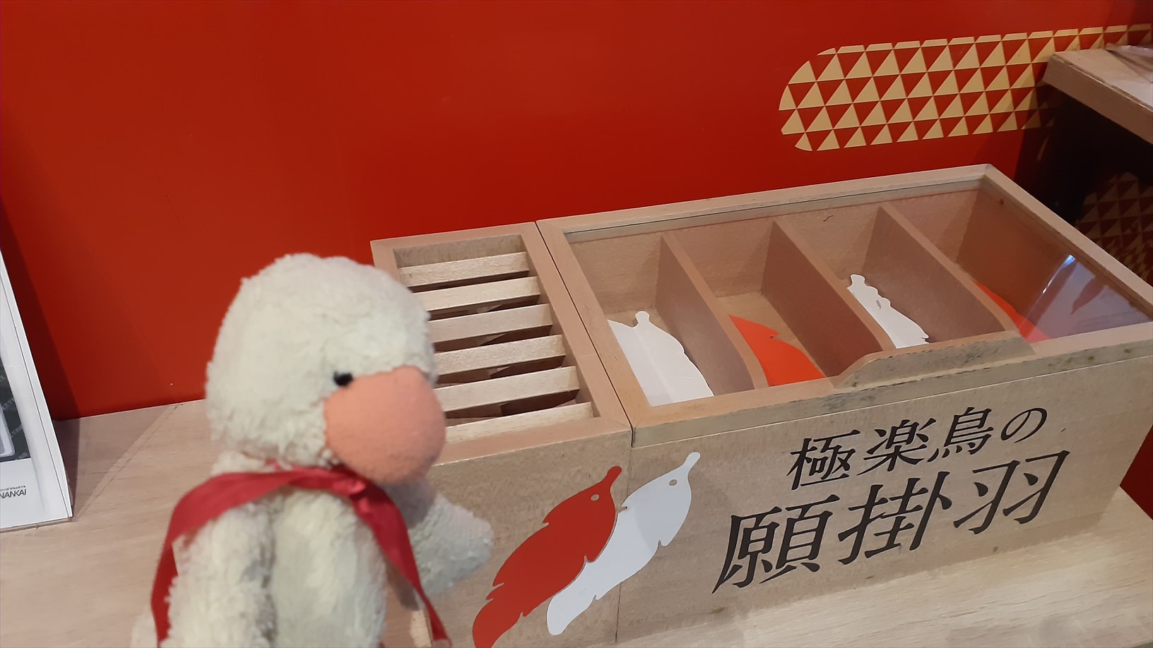すぐさまアテンダントさんにお願いし、羽をお買い上げ。(1枚100円也)